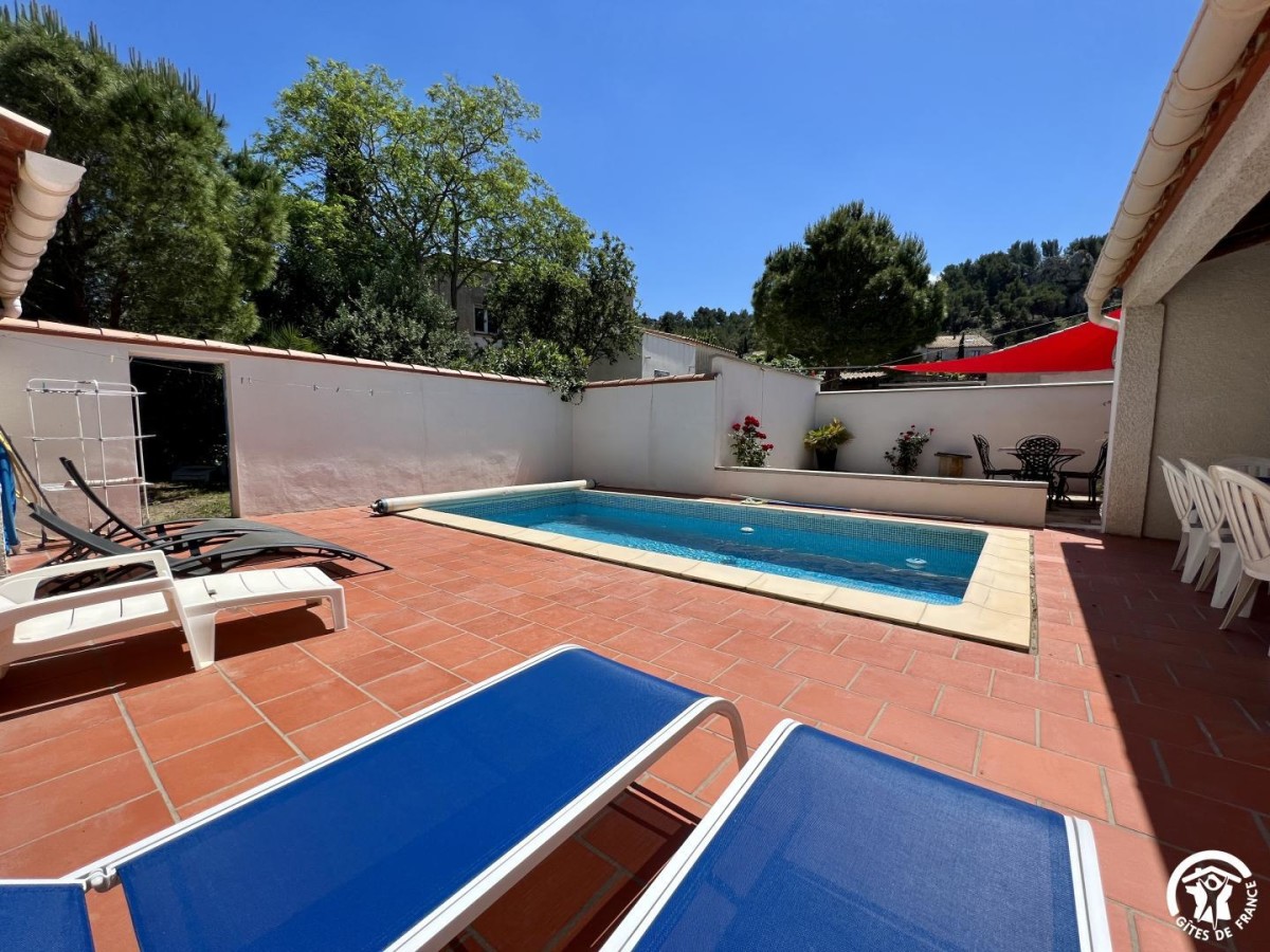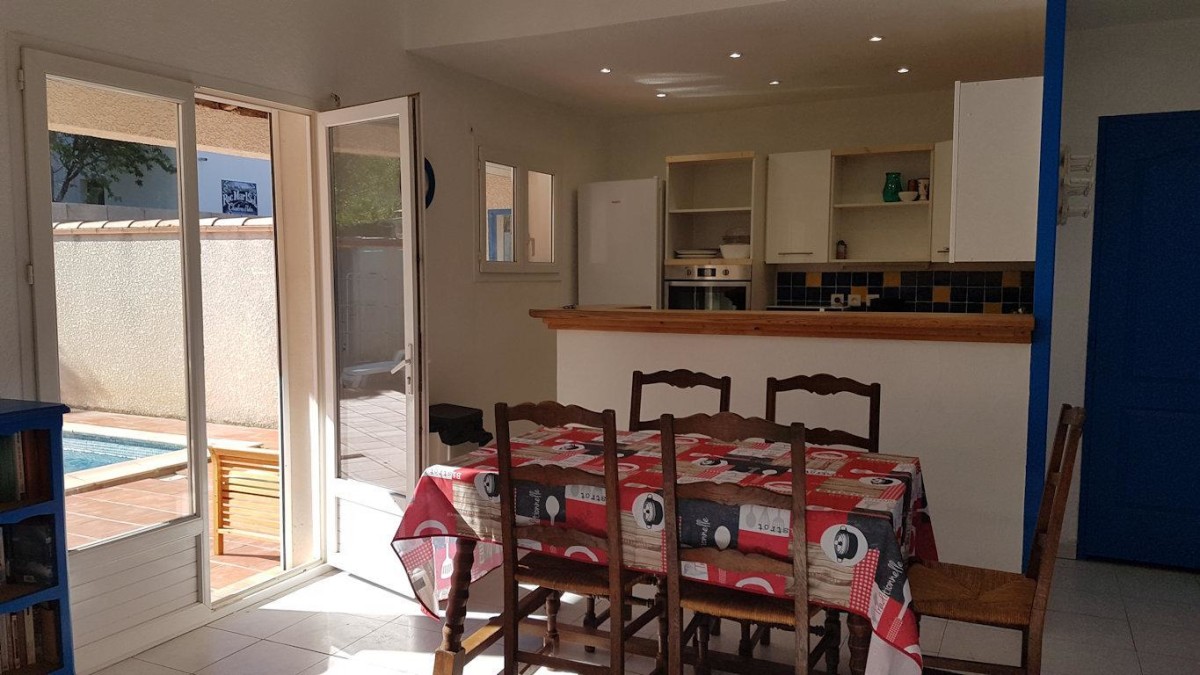 Roquefort-des-Corbières, charmant village niché entre vignes et garrigue, offre un cadre authentique. Entouré de vignobles, vous pourrez déguster des vins de caractère dans les domaines du village. Le village est idéal pour les amateurs de nature, avec de nombreux sentiers de randonnée à travers pinèdes, falaises calcaires et anciennes capitelles. À quelques minutes, les plages de La Franqui, Port-la-Nouvelle ou Leucate offrent baignade, farniente et sports nautiques. La réserve naturelle de Sigean et les salins de Gruissan sont des excursions proches à ne pas manquer. Les ruines de l’ermitage de Saint-Martin et le panorama sur les étangs valent le détour. L’été, marchés, fêtes locales et soirées vigneronnes rythment la vie du village. Roquefort est un point de départ parfait pour découvrir les Corbières maritimes entre mer, vignobles et patrimoine. Le gîte « La Villa Bleue » entièrement de plein pied, se compose comme suit : – un abris voiture en devant de porte, vous permettra de maintenir votre véhicule à l’ombre. – un séjour-cuisine avec cheminée insert, donne sur la terrasse couverte avec salon de jardin. – un WC indépendant. – une chambre avec 1 lit en 140 et sa salle d’eau avec WC. – une chambre avec 4 lits en 90 superposés. – une salle d’eau avec WC. – une chambre avec 1 lit en 140 – une chambre avec 1 lit en 160 et salle d’eau. Sur la terrasse, piscine privative (3 x 6m profondeur 1.50m). A l’arrière du gîte jardin avec salon de jardin et barbecue. Table de ping-pong. Chauffage électrique en sus.