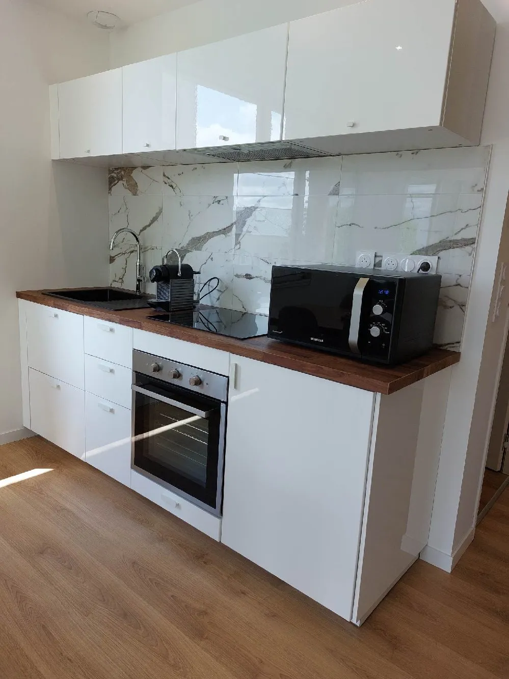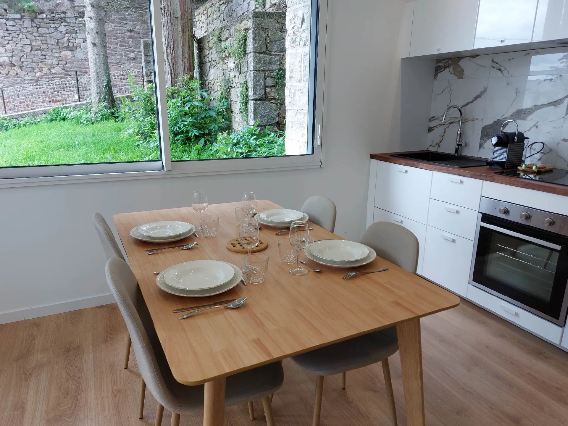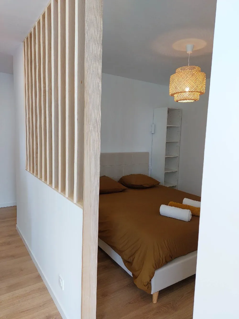 Le logement refait à neuf dispose d’une cuisine équipée ouverte sur le séjour, d’une chambre (lit Queen Size), d’une salle de bain avec douche à l’italienne. Logement fonctionnel et entièrement équipé (four, plaques induction, machine à café, réfrigérateur, lave-vaisselle).