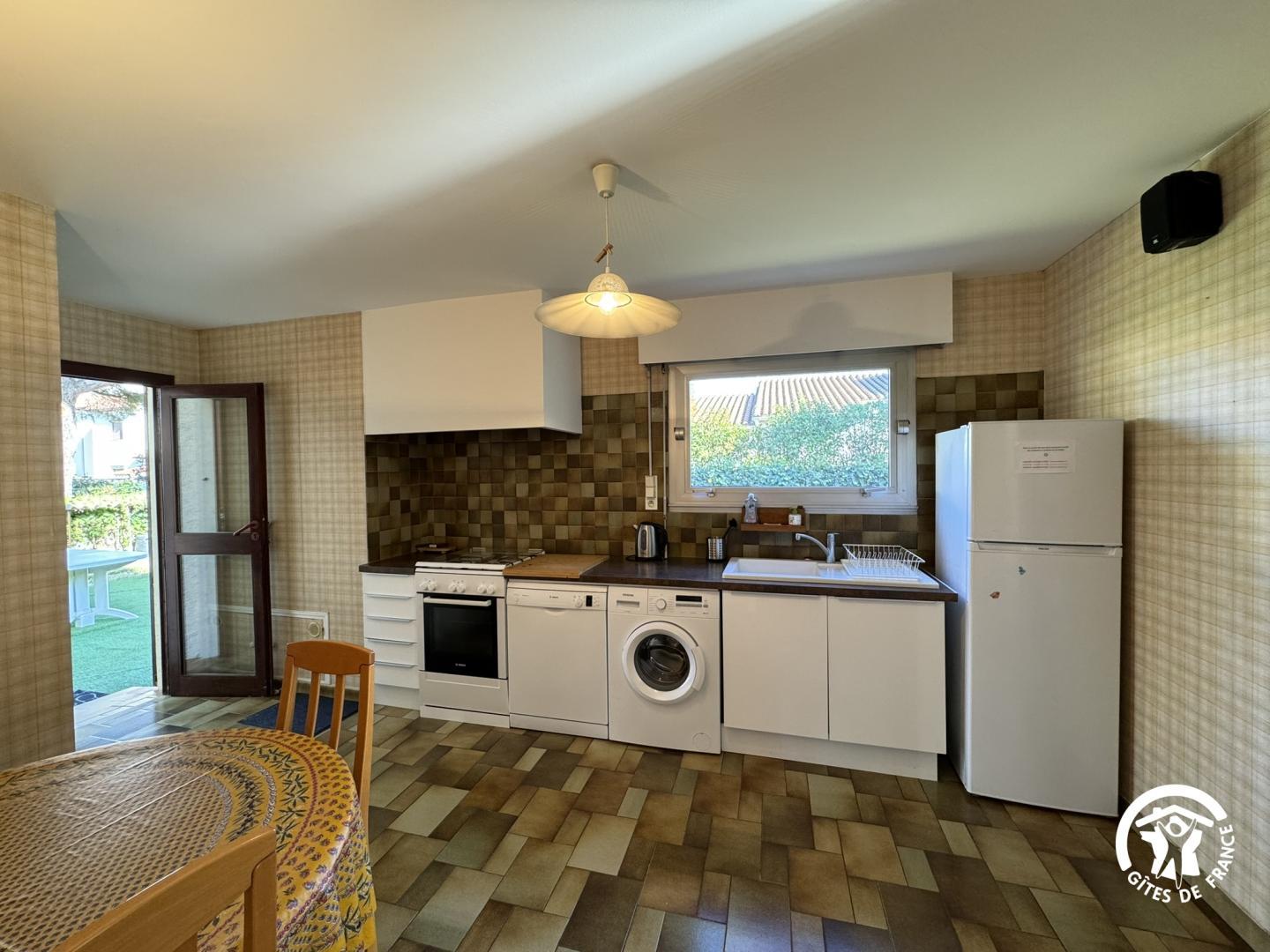 Situé à Canet-en-Roussillon, ce gîte vous accueille dans un environnement paisible, à quelques minutes à pied des plages de la Méditerranée, des commerces, restaurants et du charme typique du littoral catalan. Vous serez à quelques minutes du port et du célèbre étang de Canet-Saint-Nazaire, classé Natura 2000, où faune et flore se dévoilent au fil des saisons. La région vous invite à découvrir les vignobles du Roussillon, les marchés locaux et les villages perchés des Aspres. Depuis le gîte, empruntez les pistes cyclables jusqu’à Saint Cyprien avec des panoramas exceptionnels. Cette maison mitoyenne, dans un lotissement au calme, à l’ambiance traditionnelle, vous propose des espaces bien agencés pour un séjour confortable. Vous disposez en rez-de-chaussée, d’une cuisine séparée entièrement équipée avec un cellier : gazinière avec 3 foyers à gaz et 1 foyer électrique, four, micro-ondes, lave-vaisselle, lave-linge, réfrigérateur, congélateur, bouilloire, cafetières à filtre et Nespr