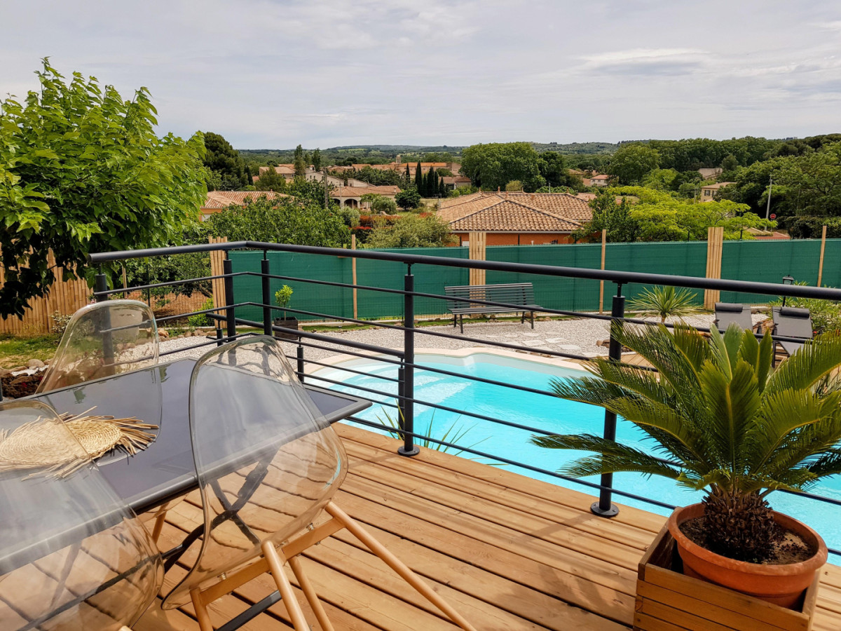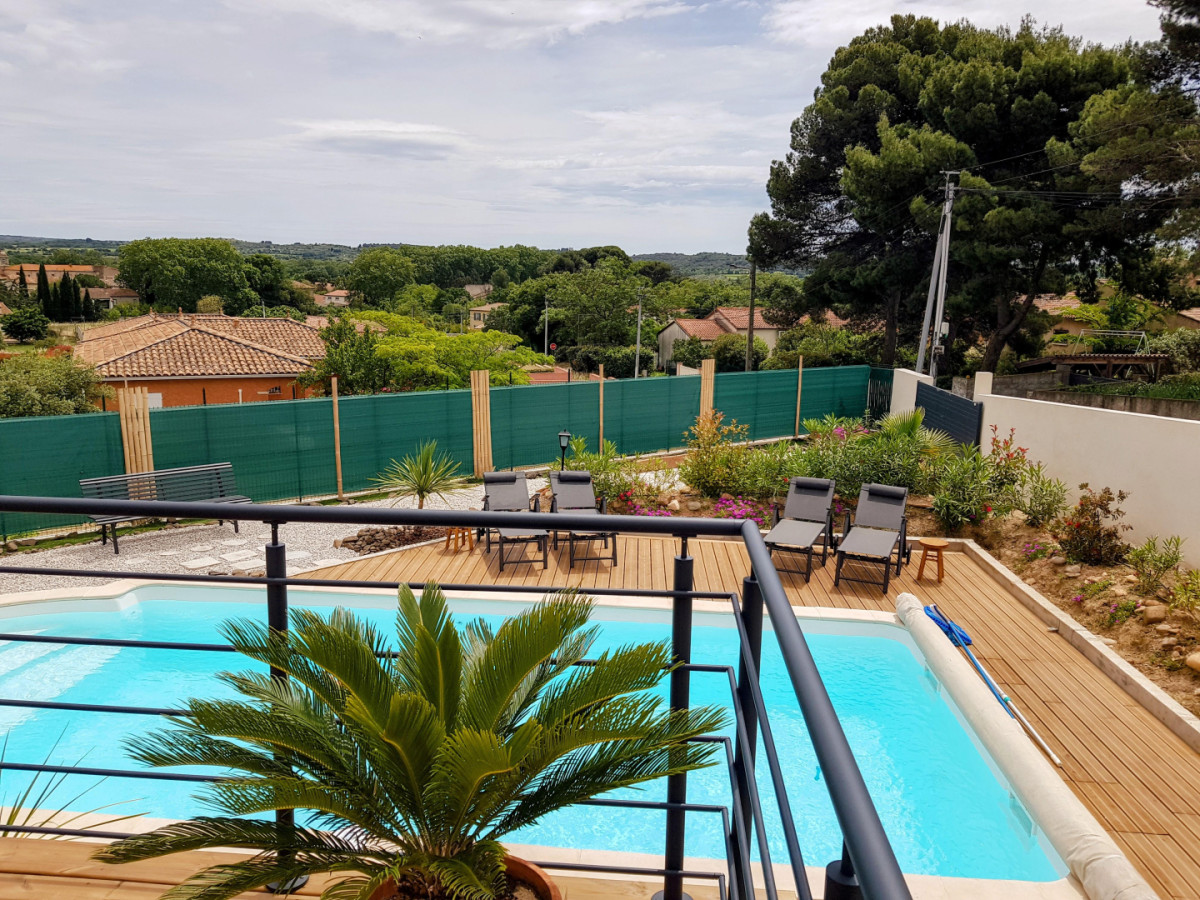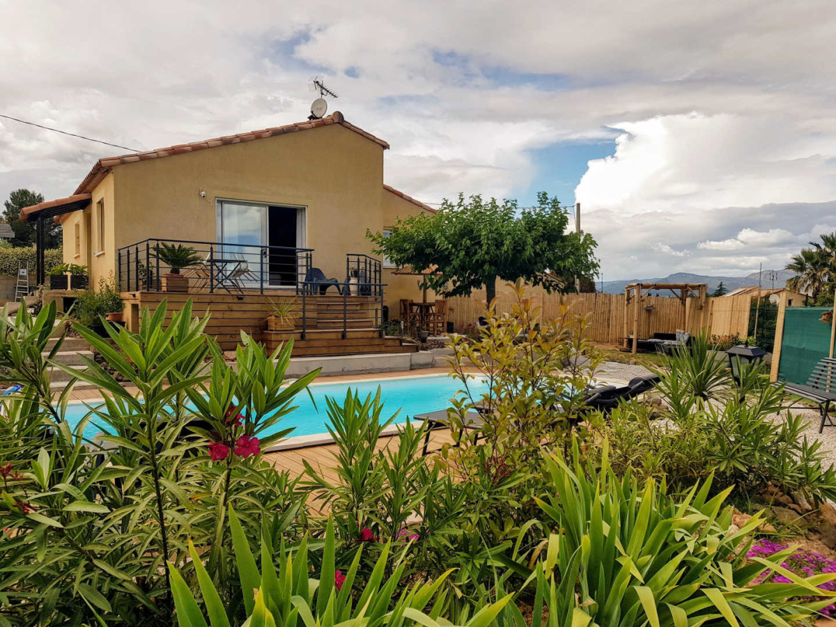 Maison individuelle climatisée de 100 m², de plein pied, à proximité du centre du village, des commerces, des animations et du fleuve Hérault. La Villa possède trois chambres, dont une chambre parentale avec un lit double, une chauffeuse et une salle d’eau avec douche et vasque avec miroir. La deuxième chambre dispose d’un lit double et d’un grand placard de rangement et la troisième chambre est idéale pour des enfants ou des amis avec deux lits simples, un bureau ainsi qu’un placard avec une multitude de jeux de société mis à disposition ! Le gîte possède une autre salle d’eau, indépendante, avec baignoire, vasque avec miroir, sèche-cheveux et lave-linge, ainsi qu’un WC indépendant. Une pièce à vivre très lumineuse de 50 m² offre un grand espace joliment décoré pour encore plus de confort et de convivialité. Dans le salon, vous trouverez deux canapés et un fauteuil en cuir, une TV, une borne radio/hifi, un vélo d’appartement ainsi qu’une borne Arcade. La cuisine est moderne et parfaitement équipée avec LV, four, micro-ondes, machine à café expresso et cafetière traditionnelle, bouilloire, réfrigérateur avec compartiment congélateur, plaques de cuisson à induction… De l’équipement pour bébés est mis à disposition (lit parapluie, chaise haute, baignoire…). A l’extérieur, accessible depuis le salon du gîte, vous pourrez profiter d’une terrasse en surplomb offrant une vue dégagée sur les environs et d’une seconde terrasse, en contrebas, à l’ombre d’un grand murier platane, mais aussi d’une grande piscine sans vis-à-vis, de 8m x 4m, d’1,40m de profondeur, traitée au sel, avec bâche à barre et alarme immergée, et d’un espace de détente fleuri. Le portail et les volets du gîte sont électriques. NB : les serviettes de toilette en option sont proposées en lot de deux pour 7€. Attractions touristiques : Pézenas, Saint Guilhem le Désert, le lac du Salagou, les Gorges de l’Hérault, le village de Canet et les multiples petits villages de l’arrière-pays, l’étang de Thau.