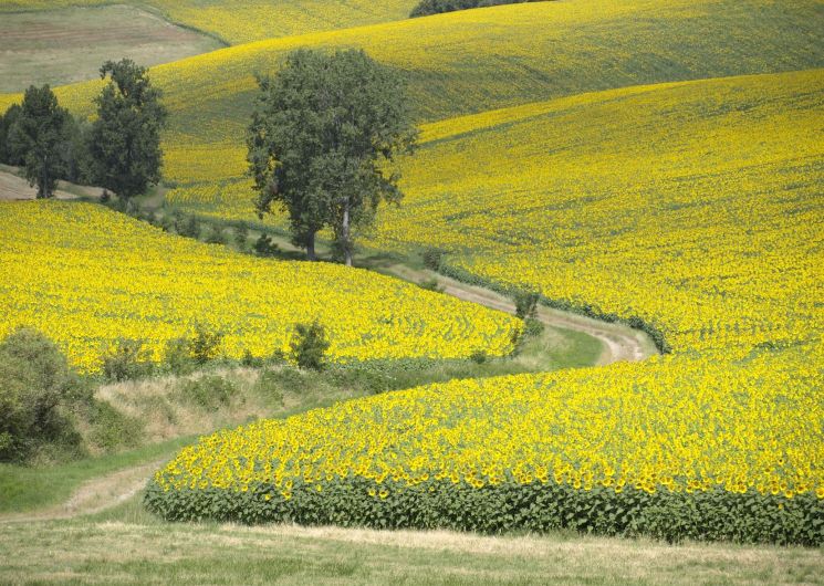 Vue sur les vallons du Lauragais depuis la grande terrasse