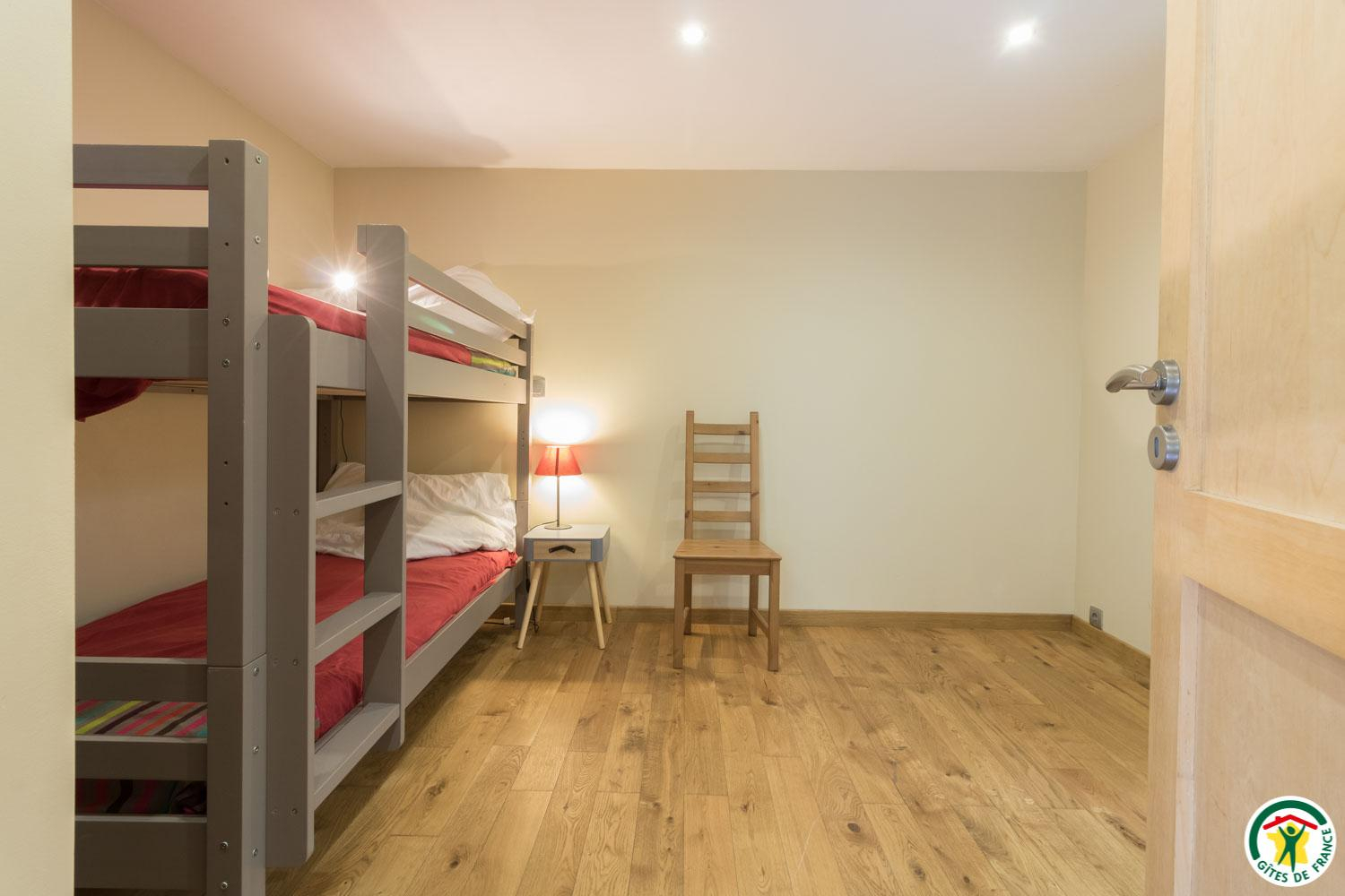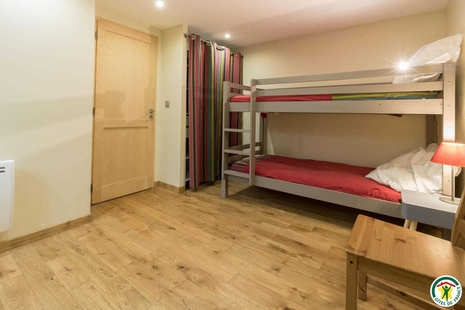 – Au rez-de-chaussée : hall d’entrée, 2 chambres (2 lits 1 personnes en 90cm superposés) (1 lit 2 personnes en 140cm), salle d’eau, WC indépendant.