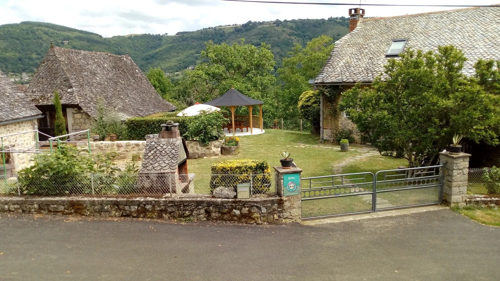 Les gorges de La Truyère avec des paysages sauvages escarpés. Un plaisir pour les yeux sur le chemin du gîte, situé dans un hameau paisible. Une glycine couvre un mur du gîte, le jardin est vaste avec des recoins pour la balançoire, lire à l’ombre…