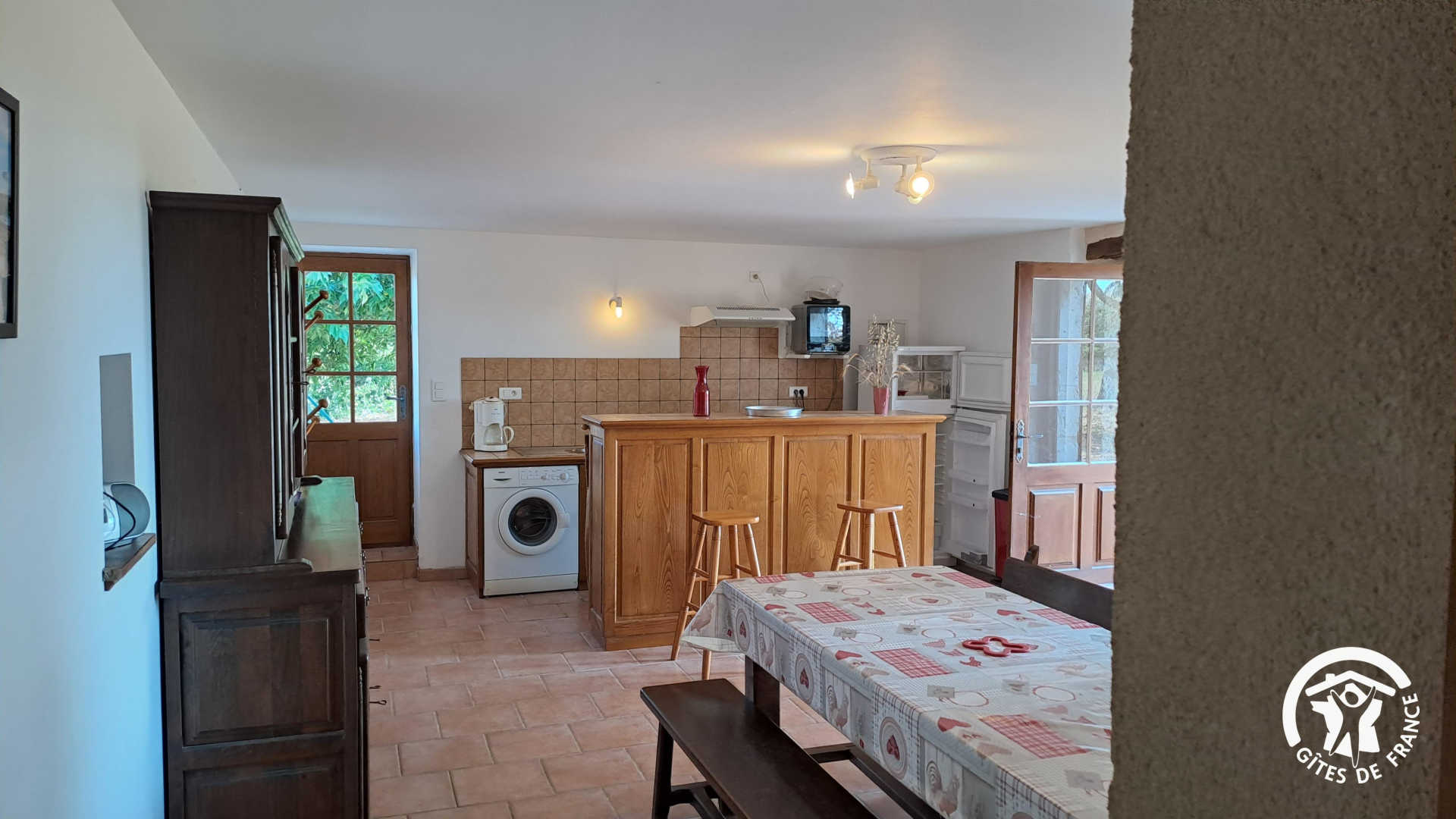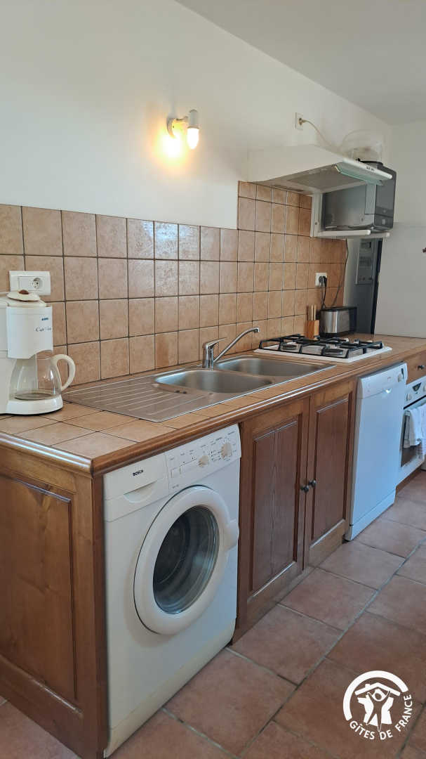 – Rez-de-chaussée : cuisine ouverte sur la salle à manger. Cuisine équipée d’un four, lave-vaisselle, plaque à gaz, lave-linge, cafetière à filtre, réfrigérateur avec compartiment congélateur, micro-ondes et grille-pain.
