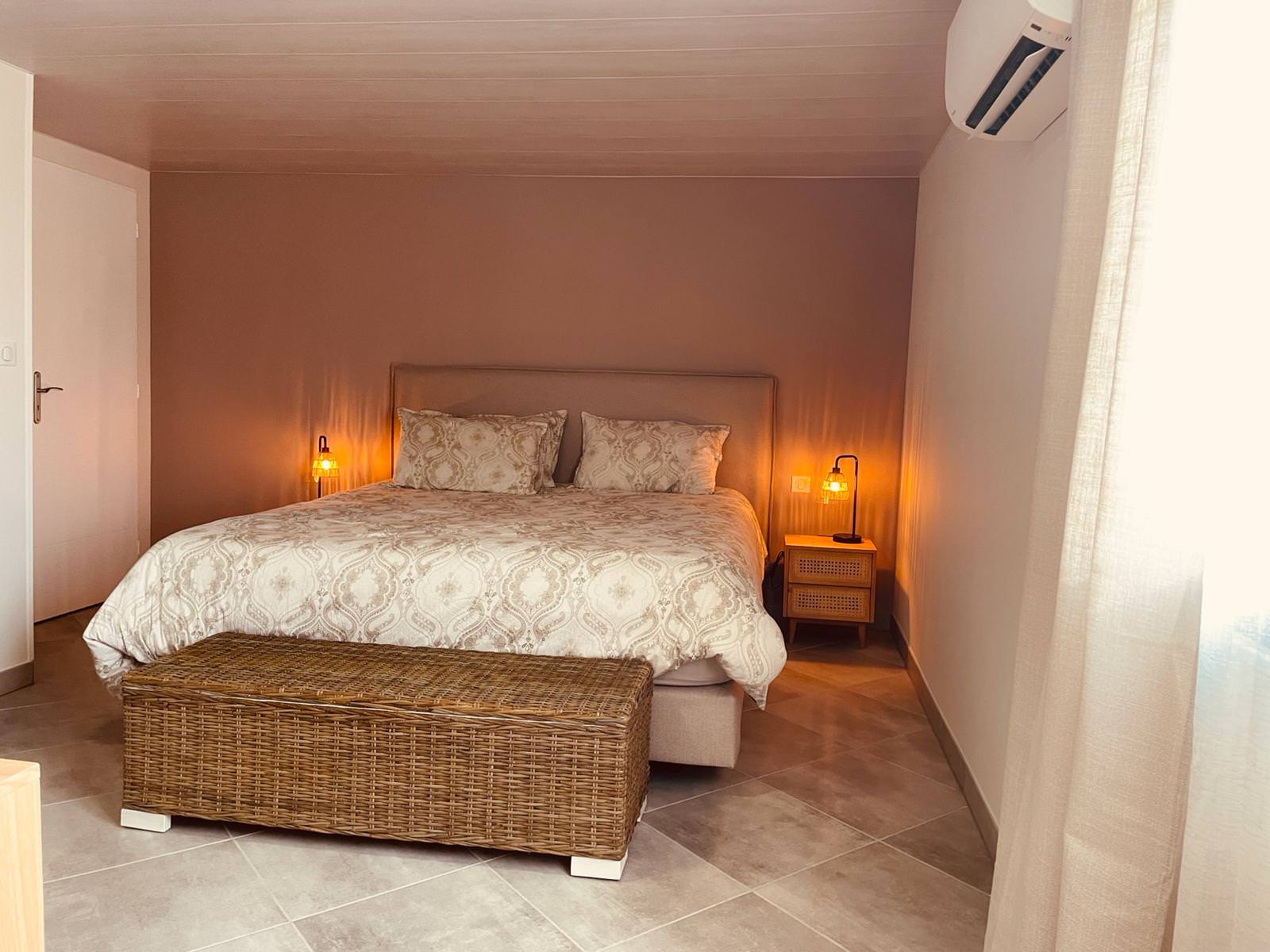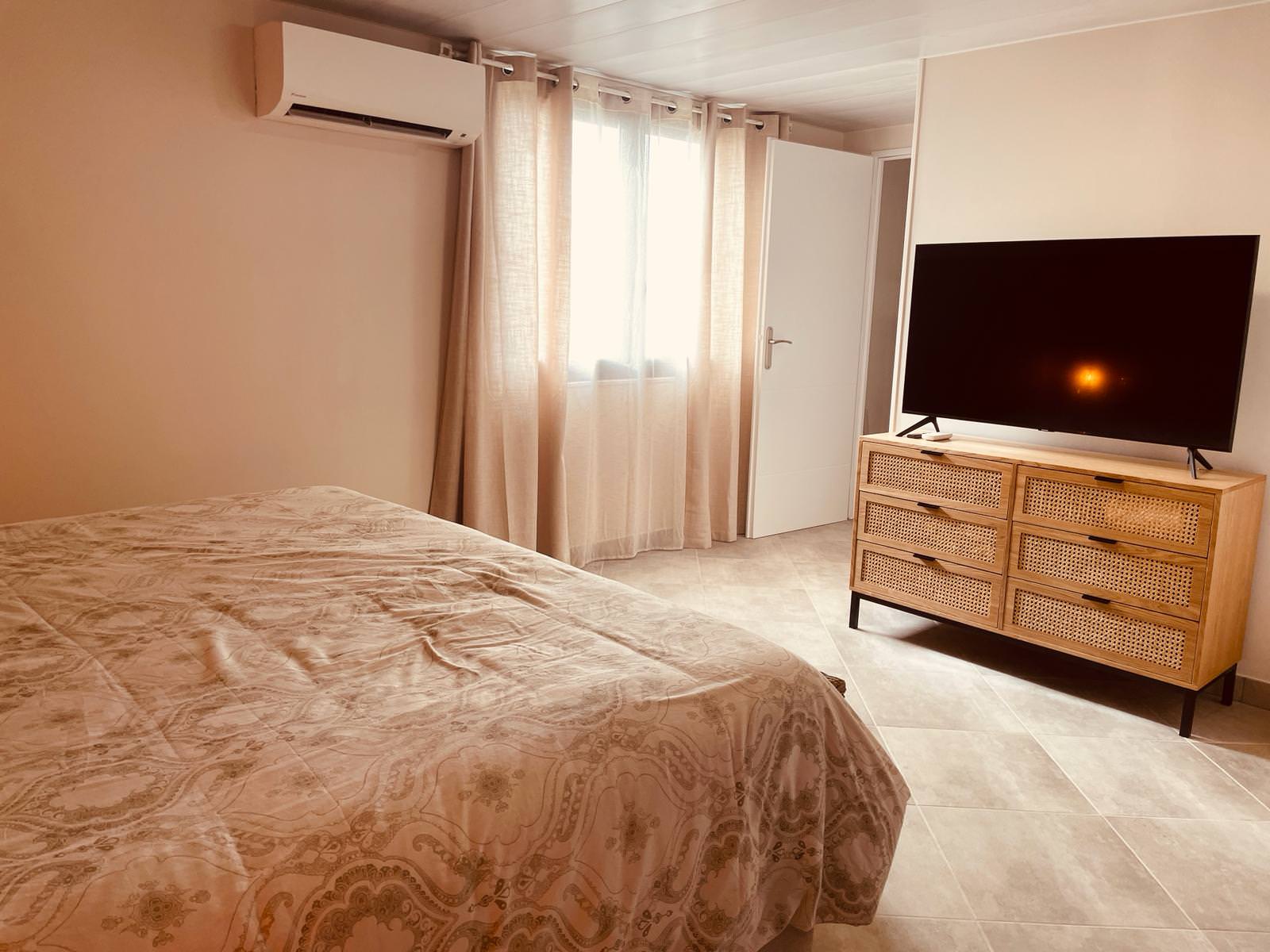 – une chambre avec lit King Size (180×200) avec Draps en Satin de Coton, TV connecté internet TNT et Netflix ;