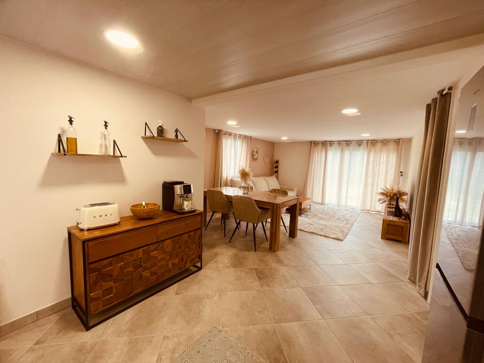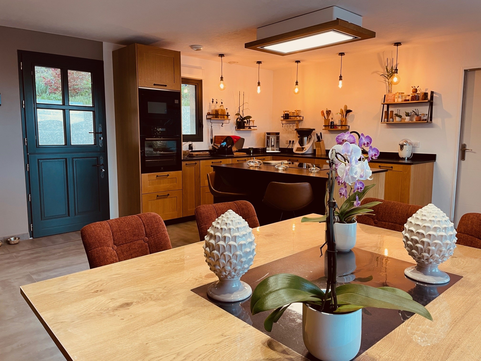 – une cuisine ouverte toute équipée, four, micro ondes, lave vaisselle, Thermomix, grille pain, cafetière grain…,