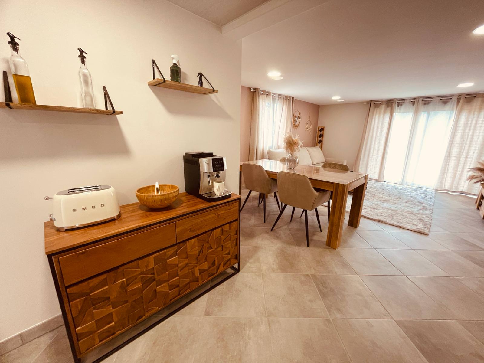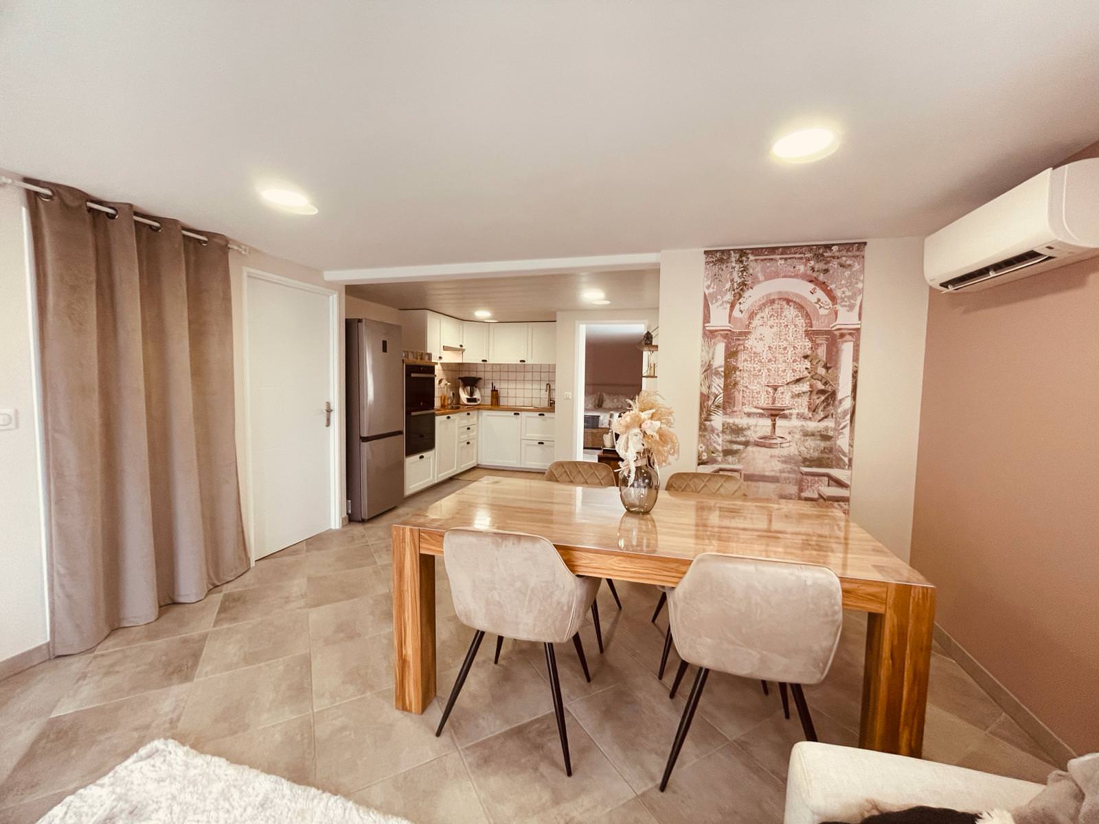 Quand l’appétit se fait sentir, une table finement dressée avec sa vaisselle cosy vous invite à savourer un dîner à deux, créé par vos soins dans la cuisine parfaitement équipée ou préparé par Mélanie votre Hôte.