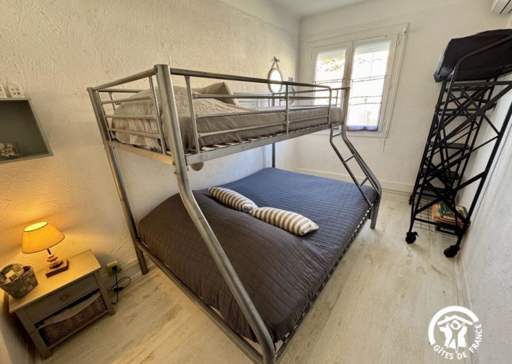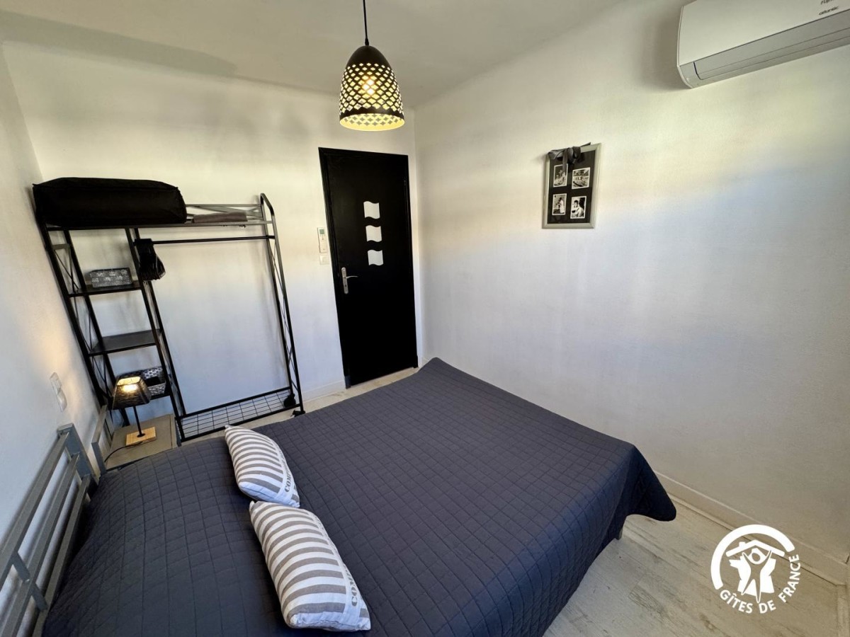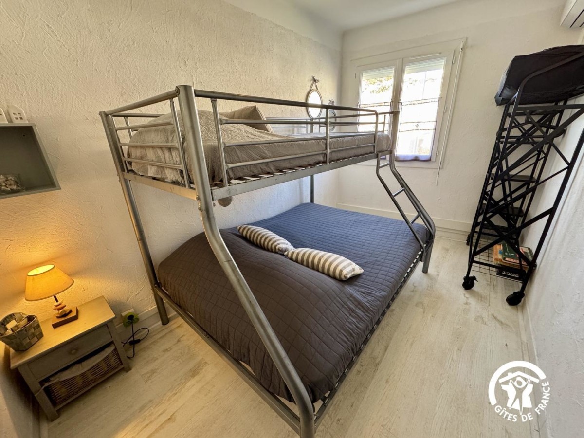 Le Black Pearl est une perle rare pour des vacances les pieds dans l’eau. Installé au 1er étage, il offre calme et confort tout en étant au cœur de l’animation balnéaire. Profitez d’un petit balcon ensoleillé, idéal pour savourer votre café ou un apéro, et de places de stationnement à proximité sans difficulté même en pleine saison estivale. La situation géographique de ce gîte en bord de mer est exceptionnelle: à quelques pas, la plage, idéale pour la baignade, le farniente ou les jeux de plage, vous attend toute la saison. En été, les plages sont surveillées avec plusieurs postes de secours et équipées d’espaces détente et spots de sports nautiques diversifiés (paddle, voile..). Autour de votre location balnéaire, découvrez une station vivante et animée: un grand marché quotidien de produits frais, artisanat et produits régionaux, des commerces, des cafés et restaurants pour goûter aux spécialités locales, des animations de plage en soirée et une ambiance typiquement méditerranéenne. Les amoureux de nature et d’activités en plein air seront séduits par le Parc Naturel Régional de la Narbonnaise et le Massif de la Clape tout proche, parfaits pour la randonnée, le VTT ou les balades à cheval . Les amateurs de glisse peuvent s’essayer au kitesurf, à la planche à voile ou au wakeboard tandis que les enfants apprécieront les clubs et activités familiales disponibles dans la station. Gîte entièrement climatisé avec: Un séjour avec une cuisine ouverte toute équipée (lave-vaisselle, lave-linge, micro-ondes combiné four, frigo-congélateur, cafetière à filtre) et coin salon avec canapé et TV. Chambre 1: lit 140x190cm. Chambre 2: lit superposé (140x190cm + 90x190cm). Salle d’eau indépendante: douche, WC. Chambre 3: lit 140x190cm, elle est mansardée et son accès se fait par un escalier escamotable (ne convient pas aux enfants et adultes ne pouvant pas monter). Points forts: Gîte avec la plage à 50m Tous les commerces à pied Proche Massif de la Clape & Narbonnaise