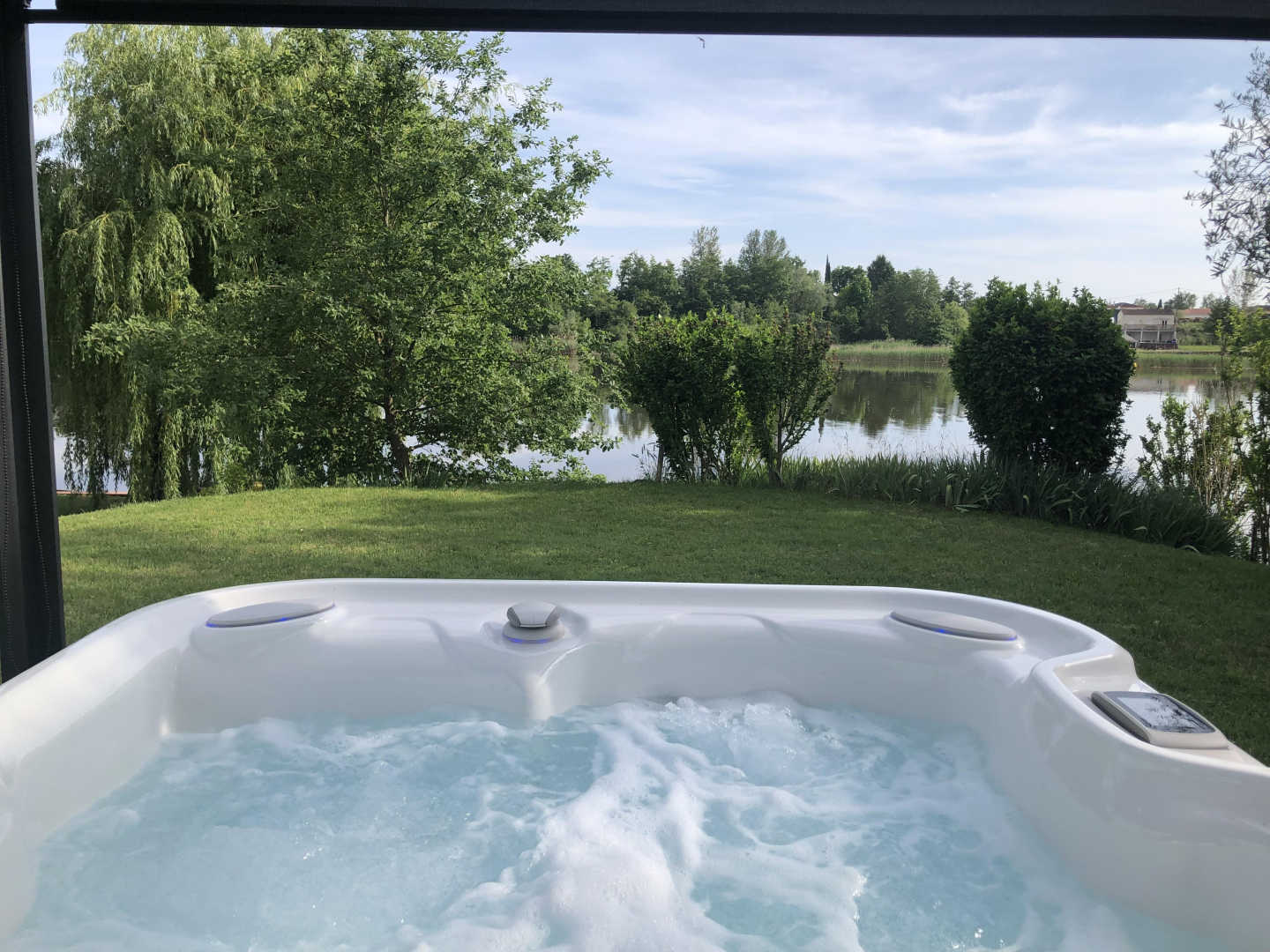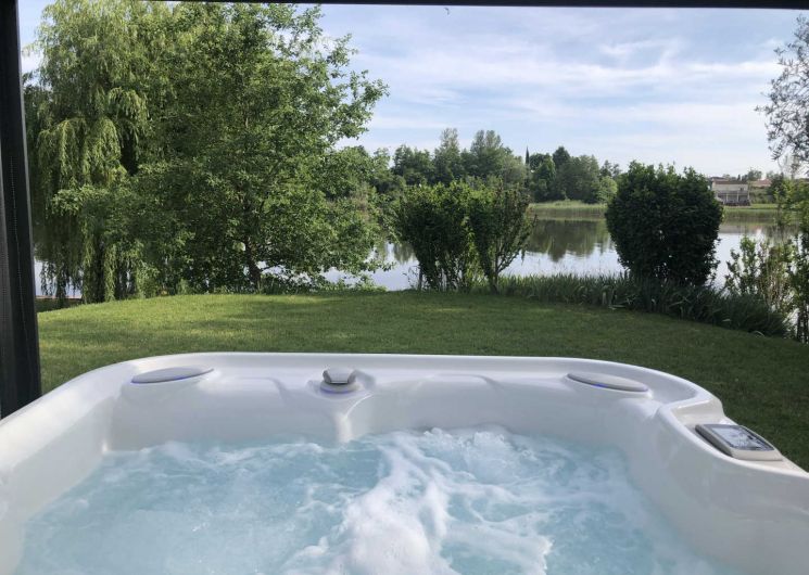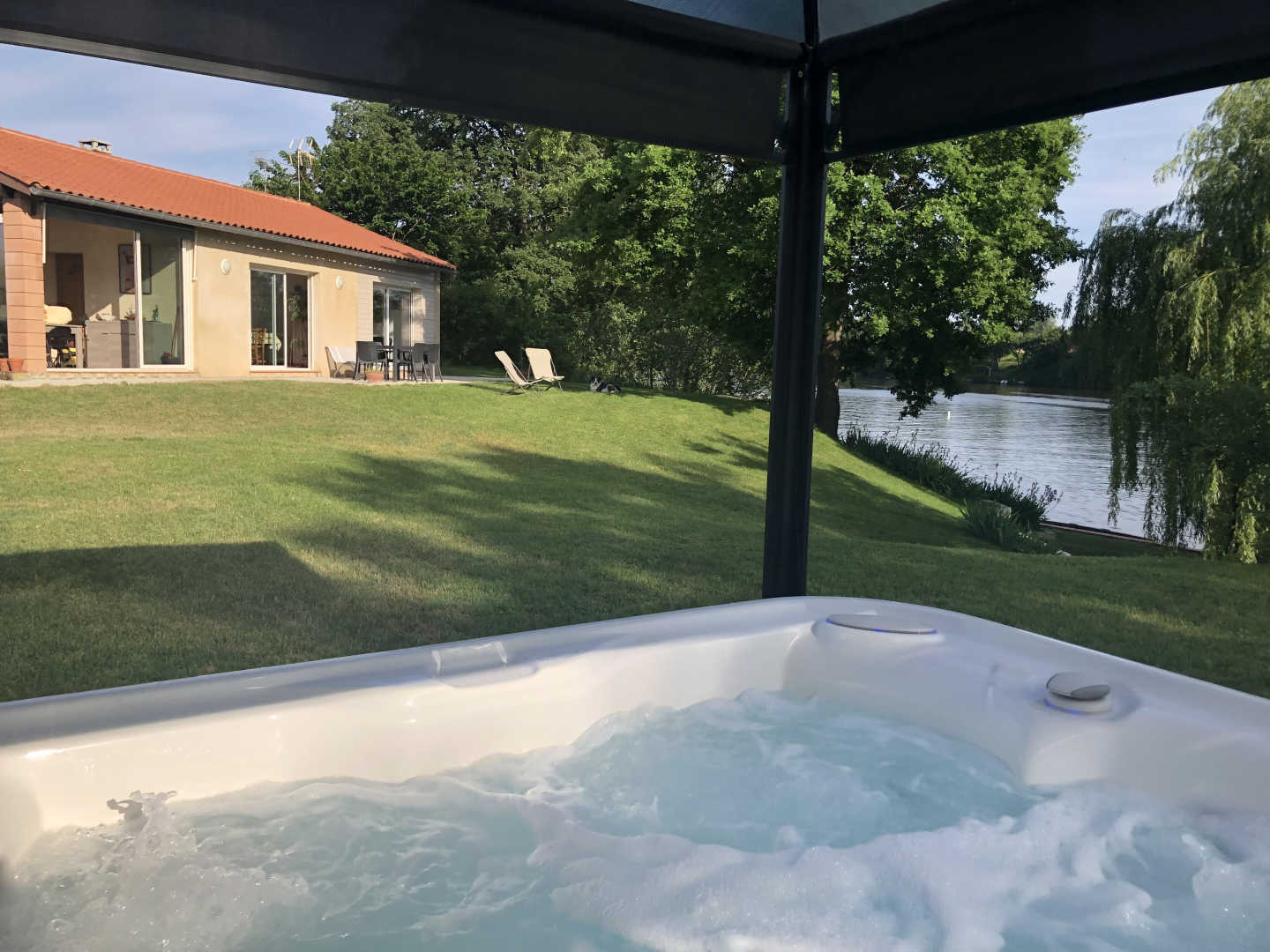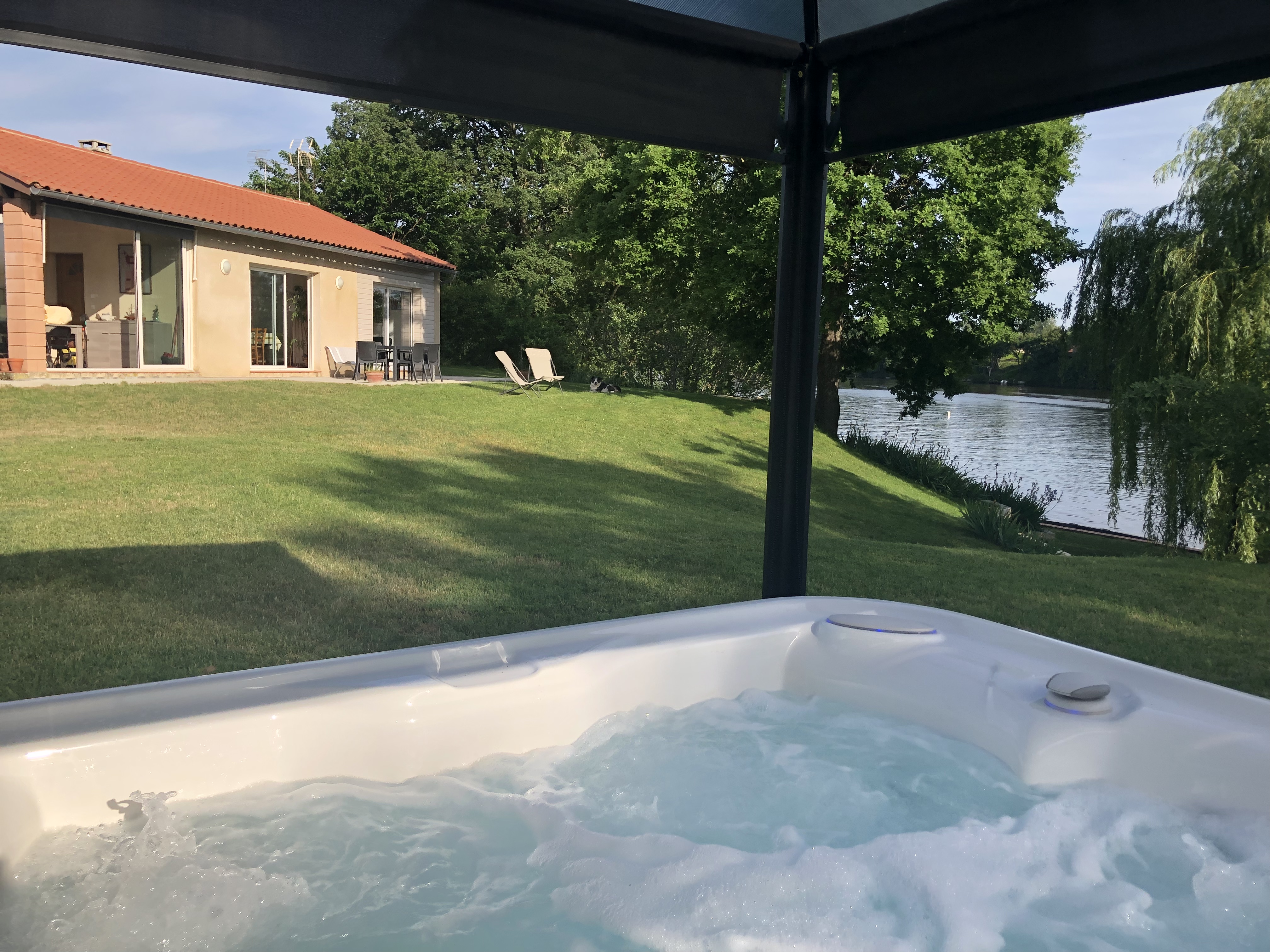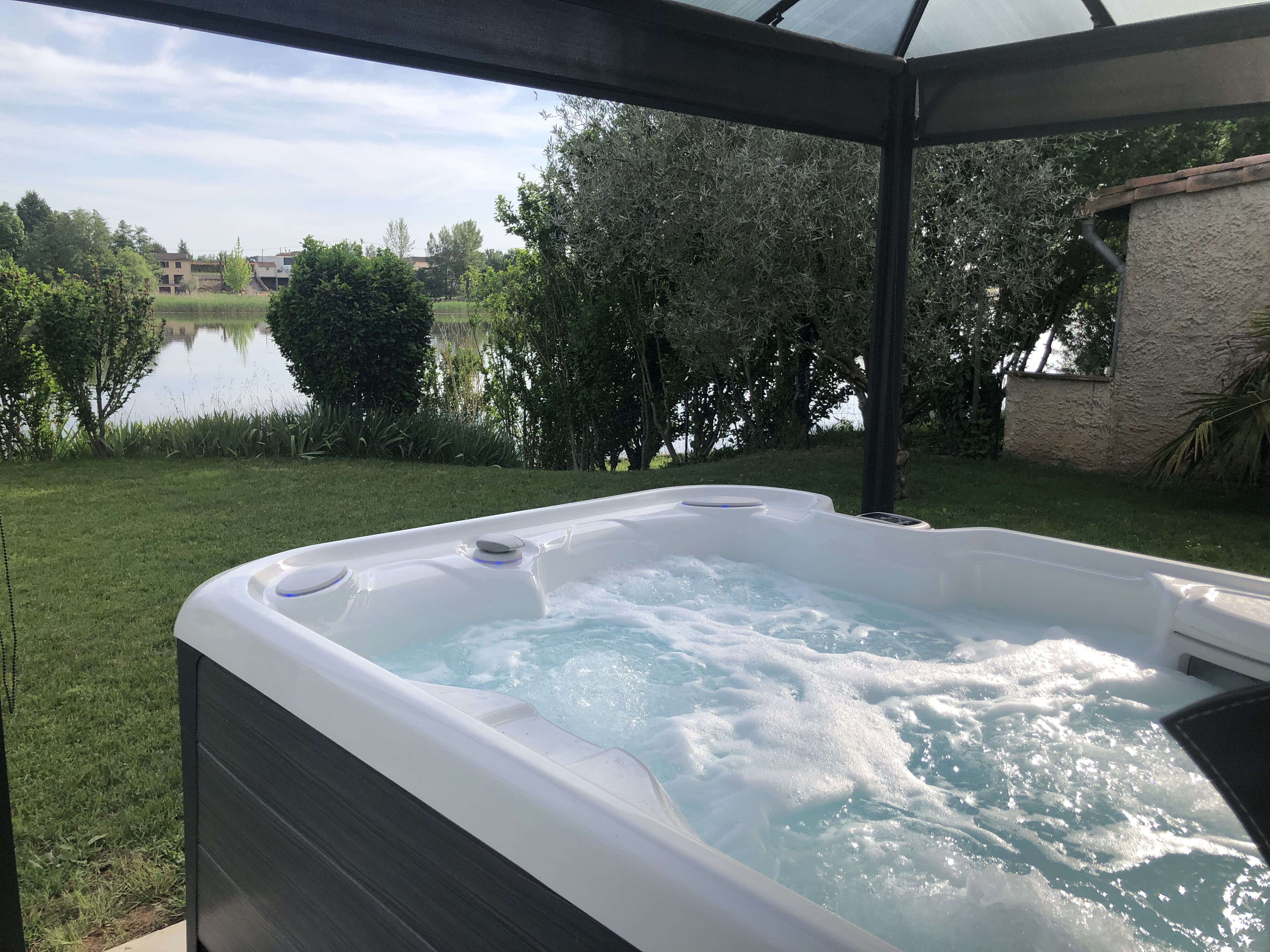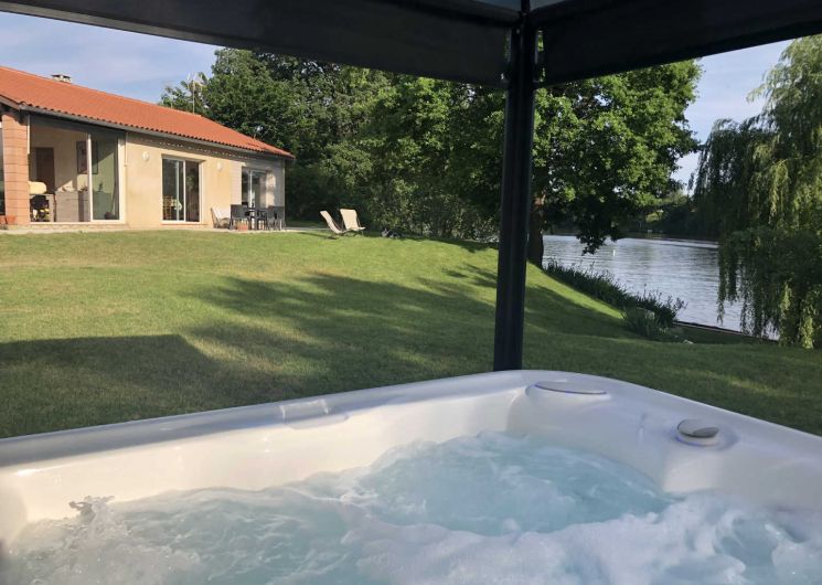 –> Nouveau : un spa posé dans le jardin, pour se détendre les yeux plongés dans le Tarn, disponible de mai à mi-octobre. Spa abrité par une tonnelle qui peut se fermer pour plus d’intimité !