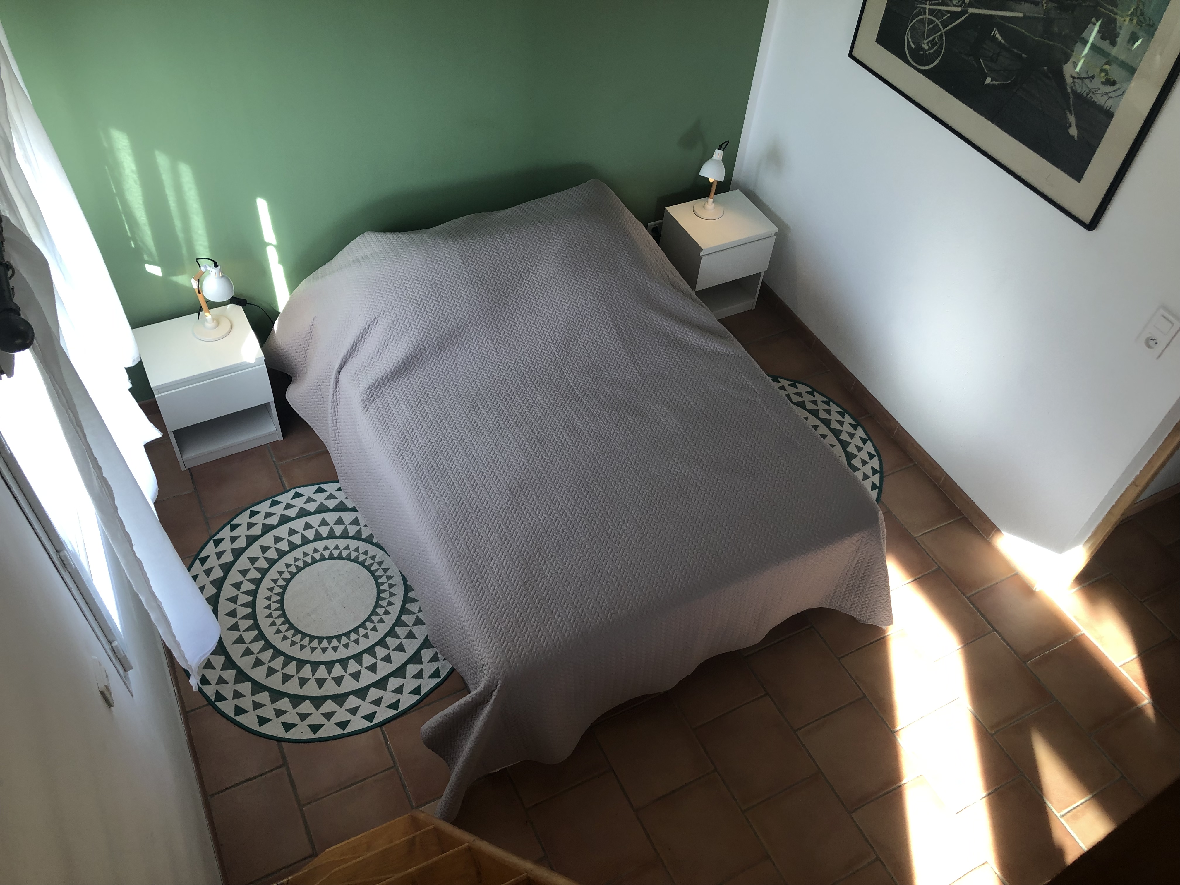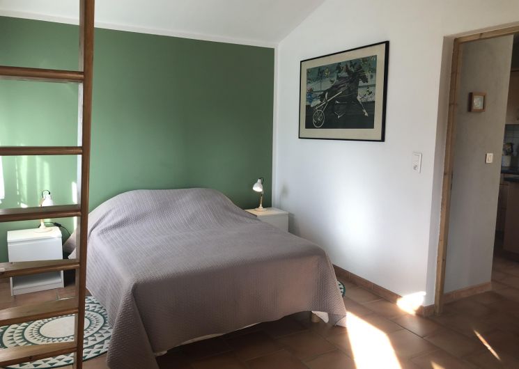 Dans la première chambre, un lit double en 140×190. Dans la seconde, deux lits en 80×190 jumelables.