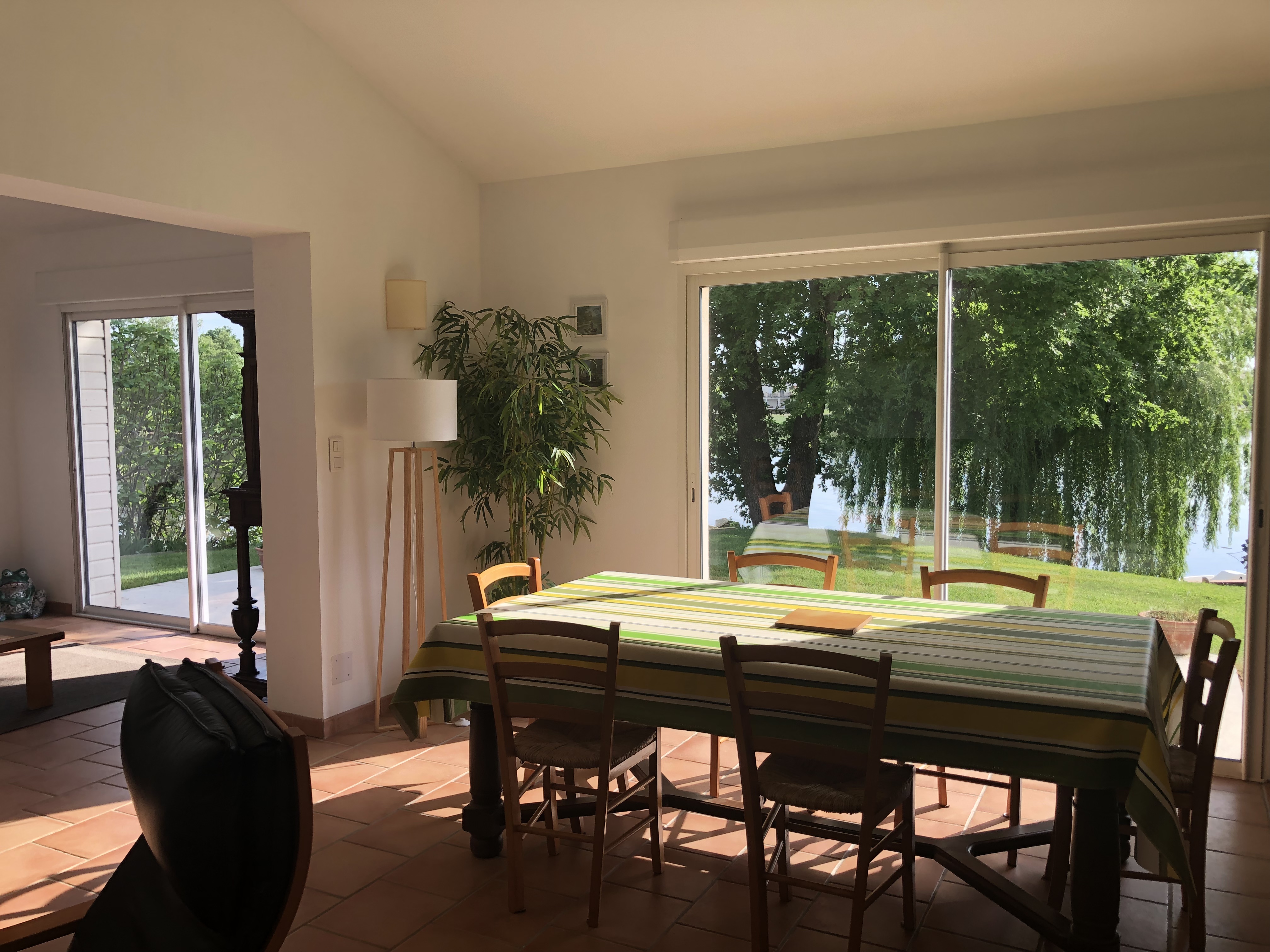 De plain-pied : pièce à vivre donnant sur la terrasse et le jardin par de grandes baies vitrées,