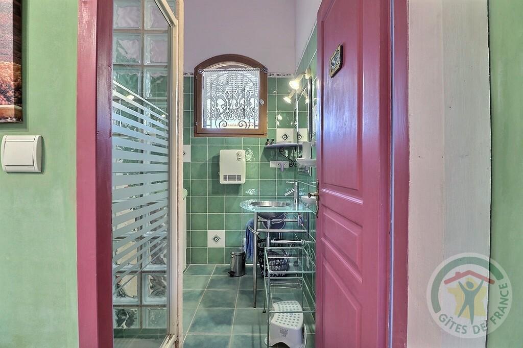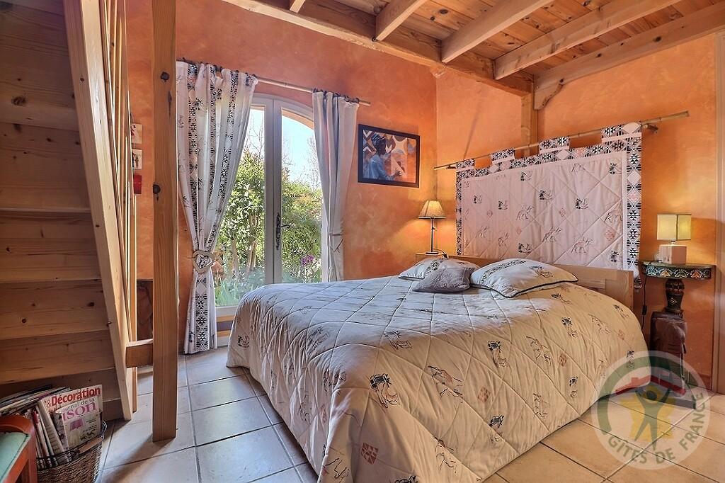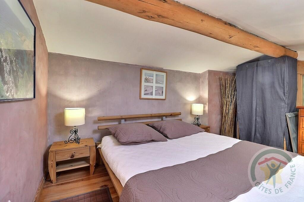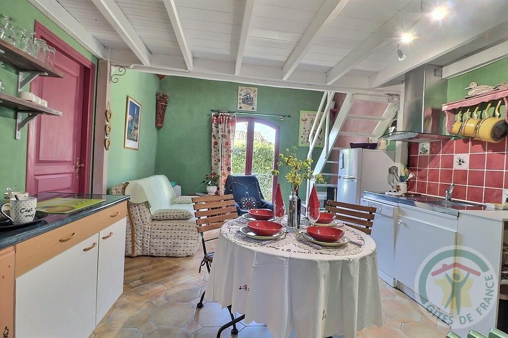 Gîte mitoyen avec le propriétaire : séjour-cuisine, chambre, mezzanine avec commode et deux chevets en pin massif, salle d’eau avec lave-linge et sèche-cheveux, table et fer à repasser, wc indépendant. Terrasse meublée de 8 m2, terrain et jardin clos de 80 m2.