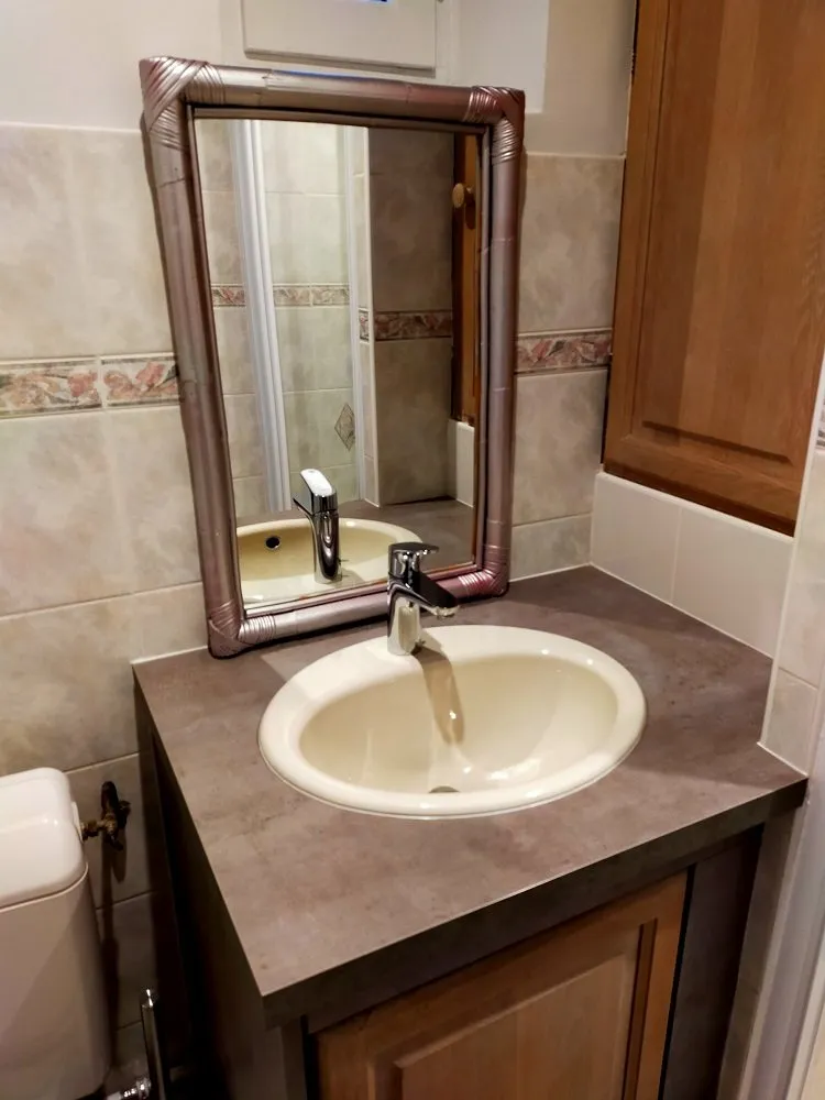 – 1 salle d’eau avec porte pare-douche, meuble sous vasque et wc, sèche cheveux