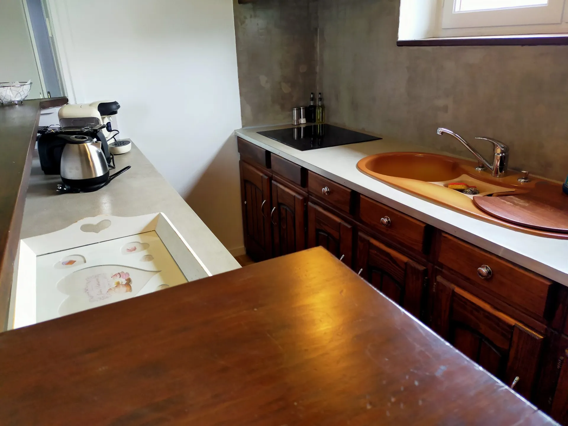 – 1 salle à manger avec table en bois massif