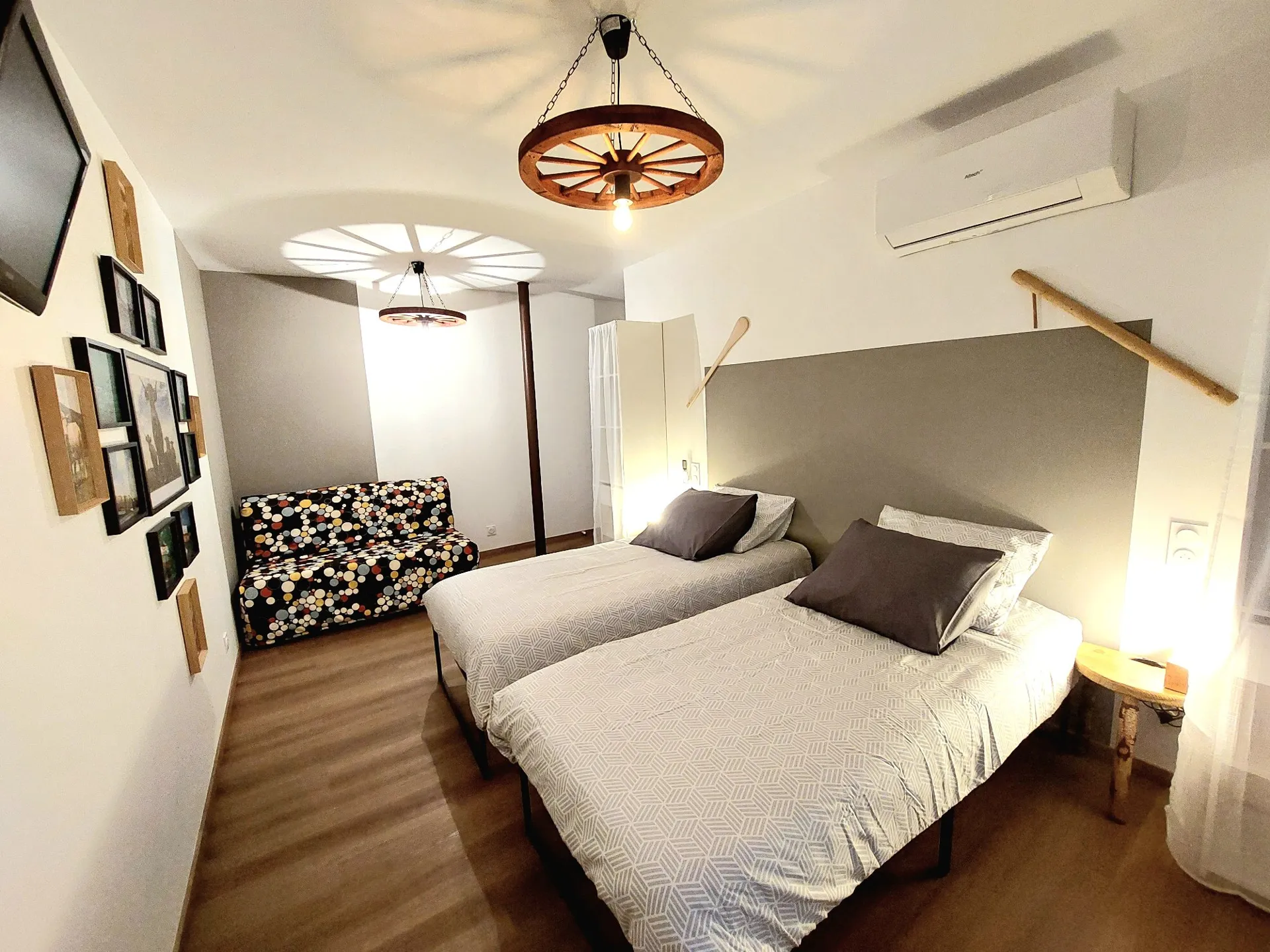 En couple, profitez d’une chambre climatisée de 11,5 m² avec un lit en 160 cm. Une déco typiquement espalionnaise pour vous offrir une nuit unique. Draps de lit et alèses inclus.