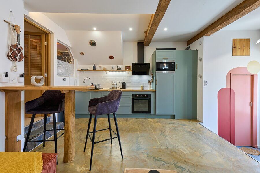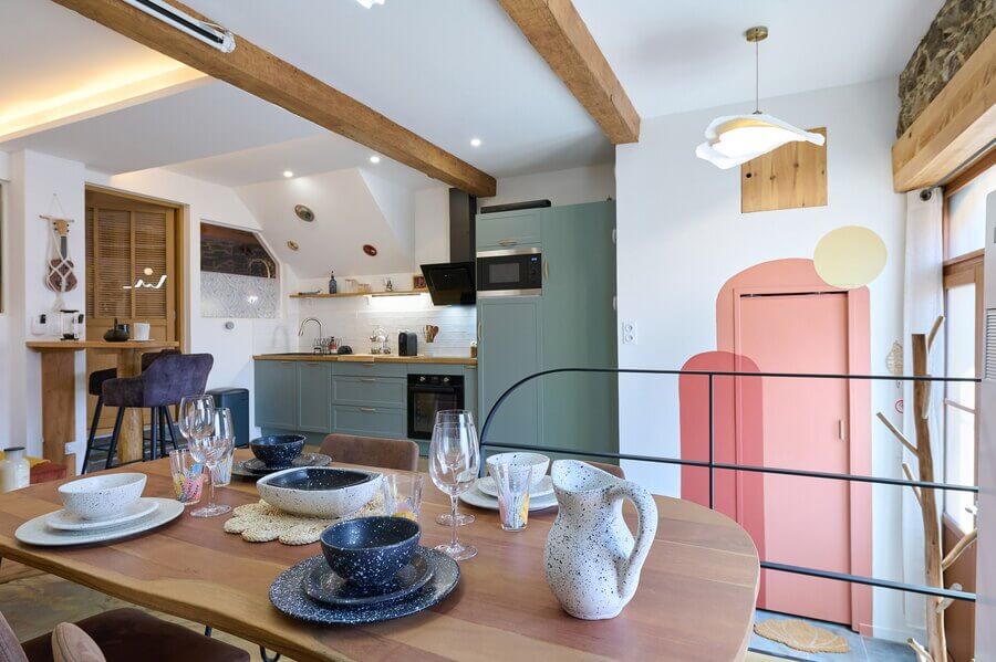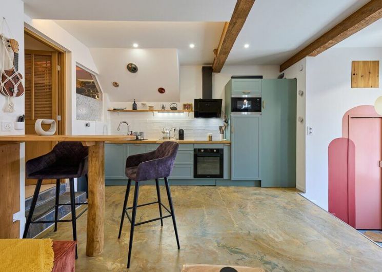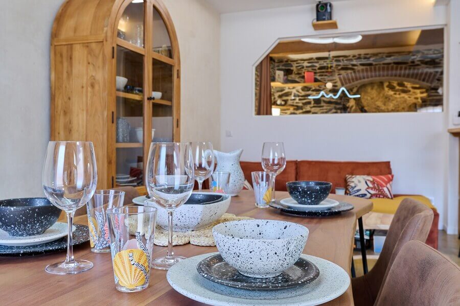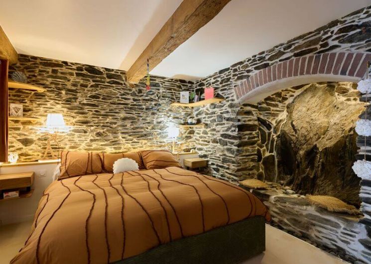 Le Calypso vous reçoit dans un vaste salon moderne et feutré, climatisé et équipé d’un vidéoprojecteur, ouvert sur une cuisine complète. Découvrez votre Suite troglodyte avec lit king size et alcôve de lecture dans la roche (literie neuve été 2025 en percale et plumes). Espace balnéo privé : Douche sensorielle : pluie tropicale, cascade, brumisateur et pommeau Womanizer. Jacuzzi maçonné : spa duo contre la roche (38°C) disponible 24h/24. Ambiance : enceintes Bluetooth intégrées, mur végétal Nanoleaf, jeux de LED et fresque sous-marine. Un lieu atypique rénové en famille en 2025, entre design, luxe et authenticité. Équipements & Services : Pierres apparentes, matériaux nobles et mobilier artisanal. Cuisine suréquipée (machine à café, lave-vaisselle, lave-linge…). Mini-bar de vins locaux et mini-escape game inclus. WC séparé. Une conception 100% locale réalisée par une famille passionnée. Un souci du détail constant pour faire de votre séjour une évasion inoubliable.