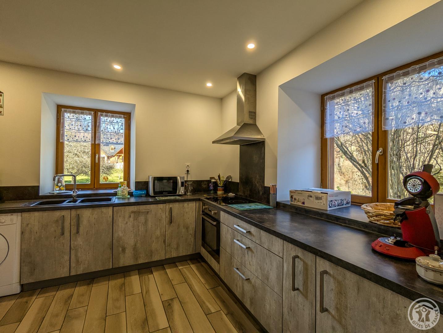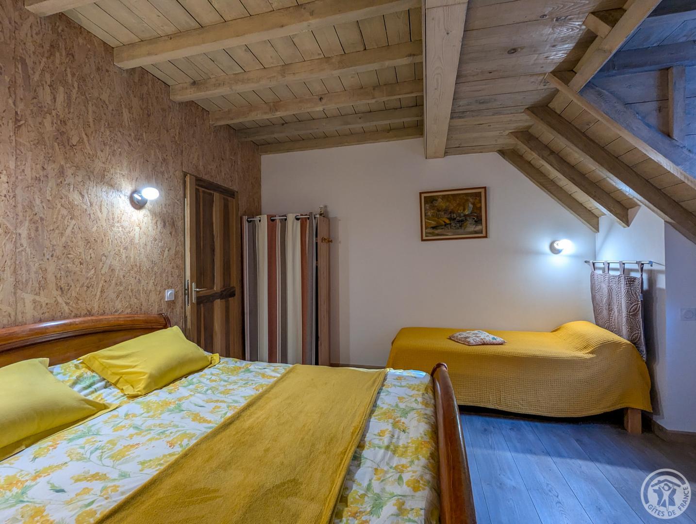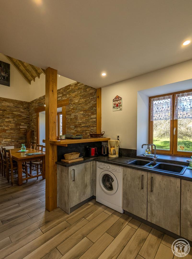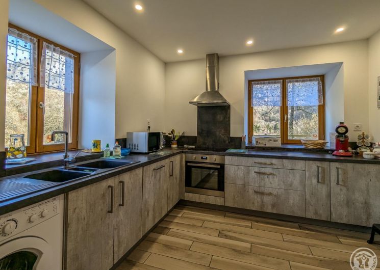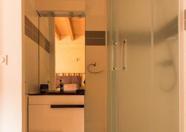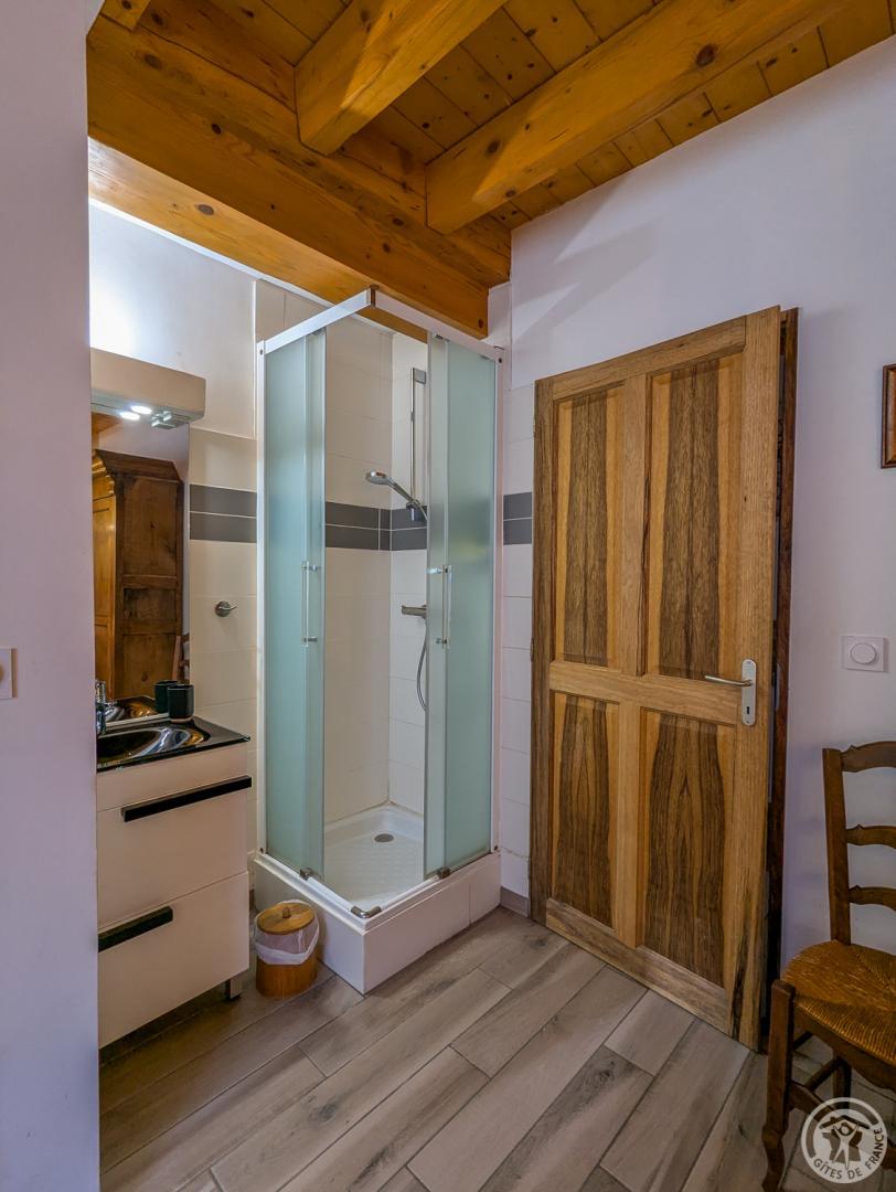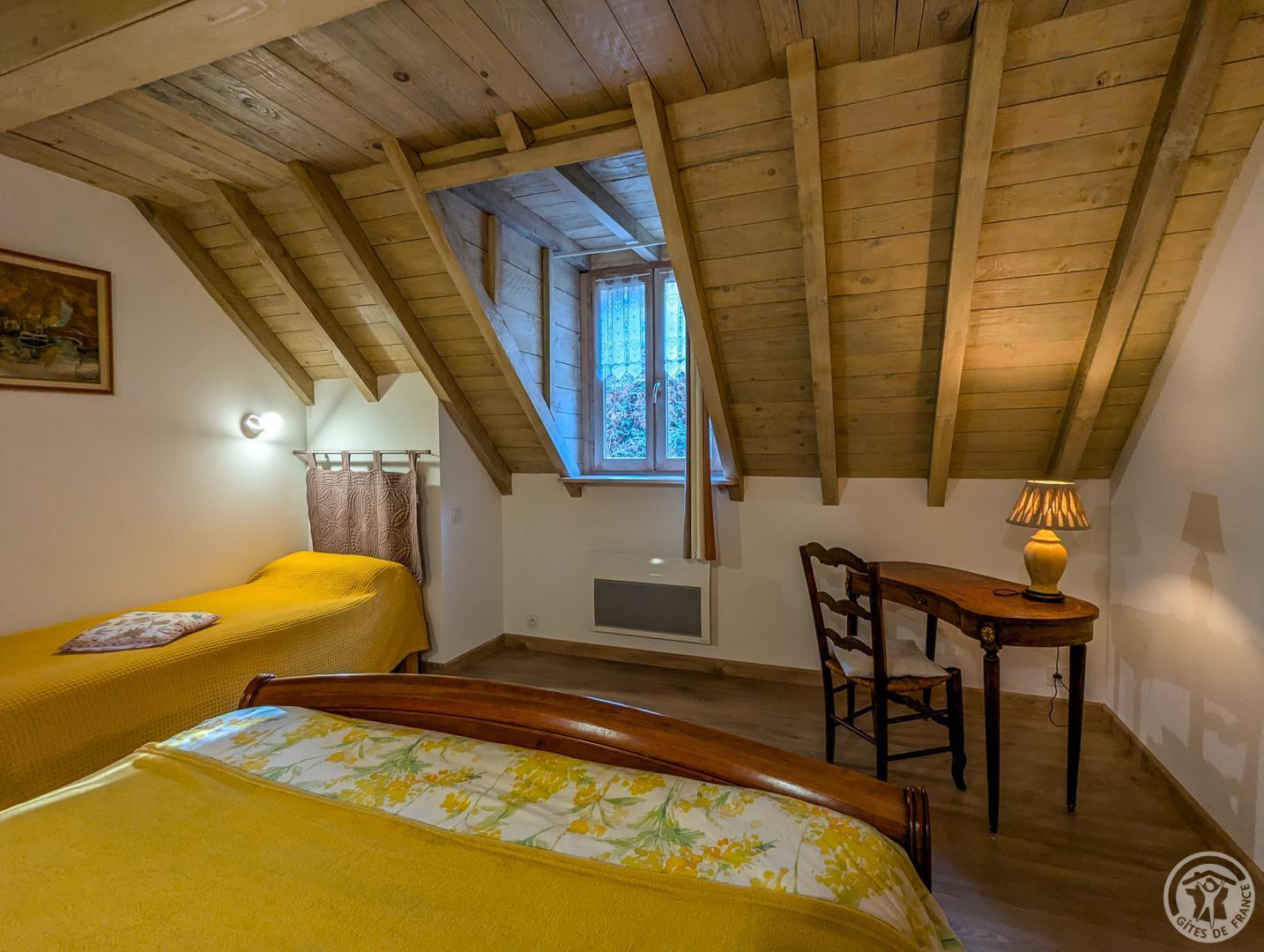 Au rez-de-chaussée du gîte : entrée après deux marches, cuisine intégrée (four intégré, plaque vitrocéramique à 3 feux, réfrigérateur-congélateur, micro-ondes), séjour avec coin-repas et espace salon, une chambre avec sa petite salle d’eau et WC séparés à l’intérieur de la chambre (1 lit pour 2 personnes en 160*200cm). A l’étage : salle d’eau avec une grande douche et deux vasques, WC séparés, 2 chambres avec chacune (1 lit pour 2 personnes en 160*200 et 1 lit pour 1 personne en 90*190). Jardin. Aire de stationnement. Chauffage électrique. Accès Internet Wifi. Animaux non-admis. Jardin clos.
