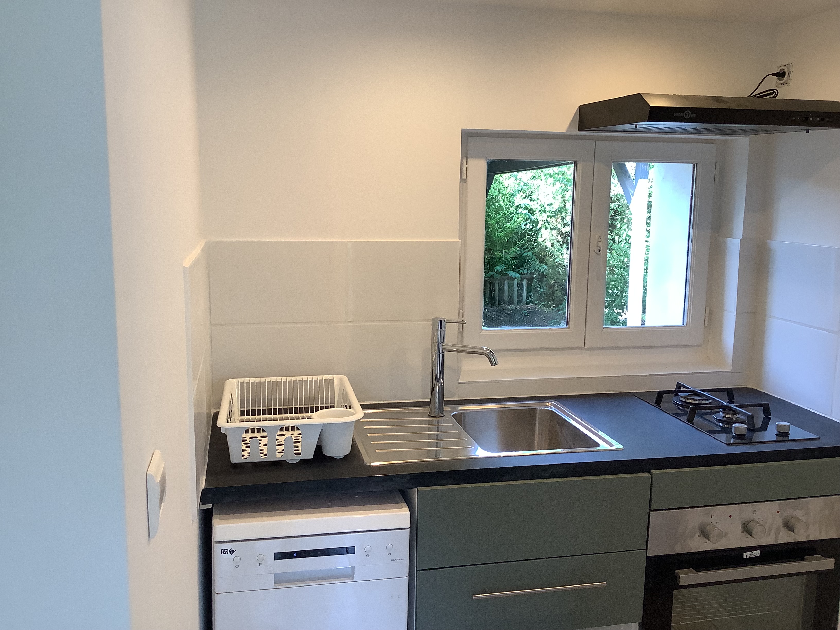 – Une pièce de vie avec kitchenette équipée (cuisson 2 feux, four électrique, micro-ondes, réfrigérateur top, lave vaisselle).