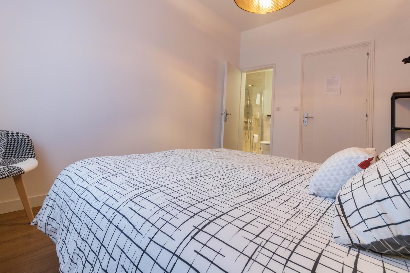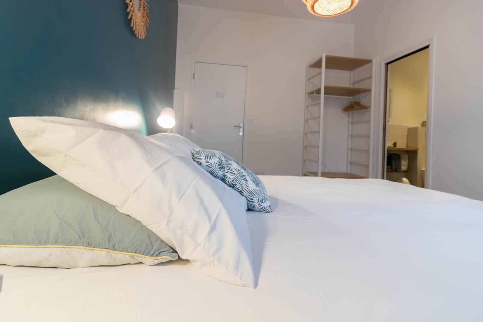 – La Chambre Double comprend, quant à elle, 1 lit double en 160*200cm et une salle d’eau privative.
