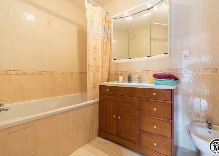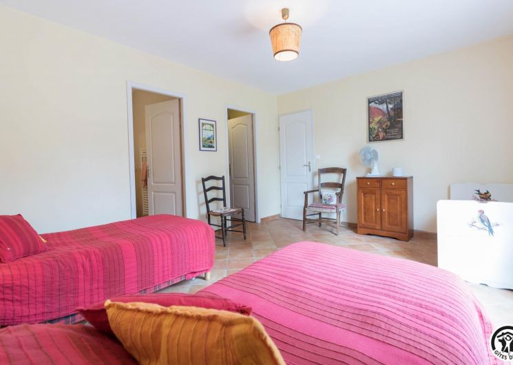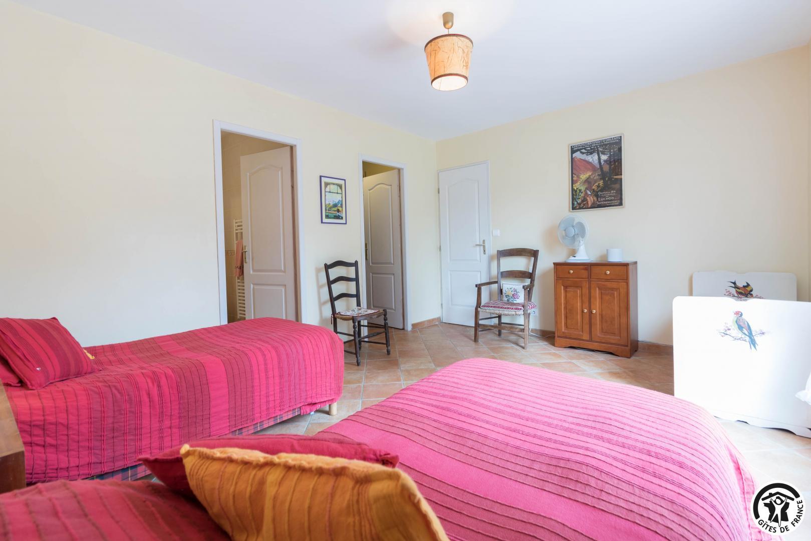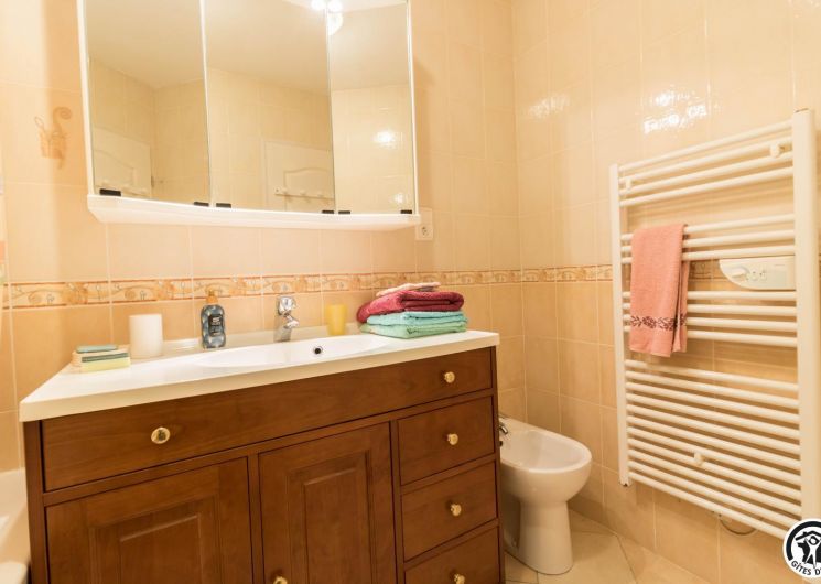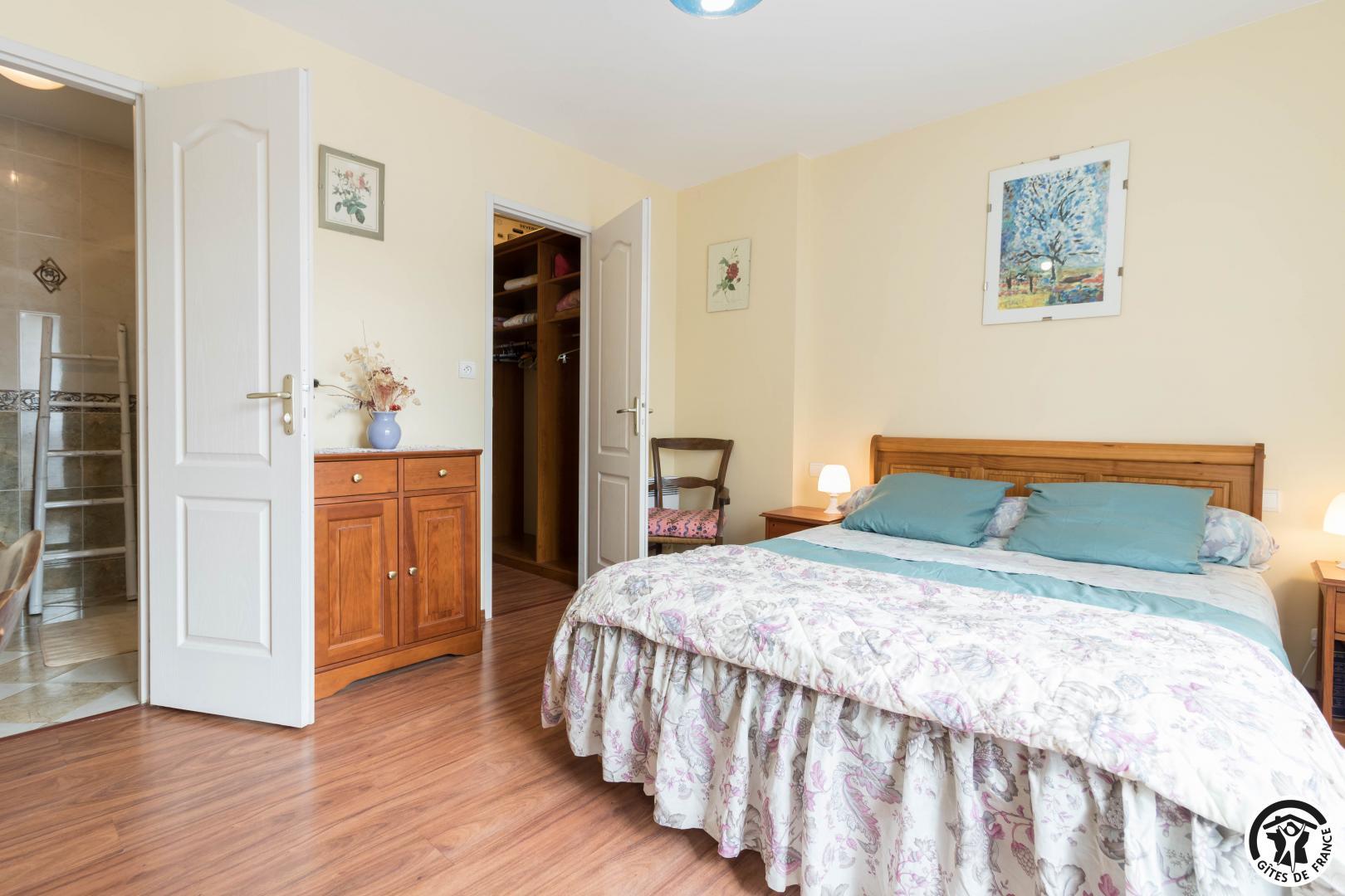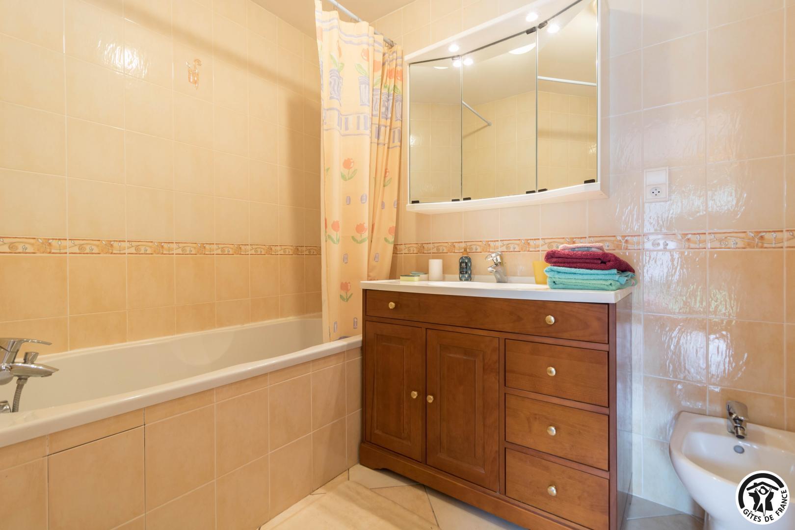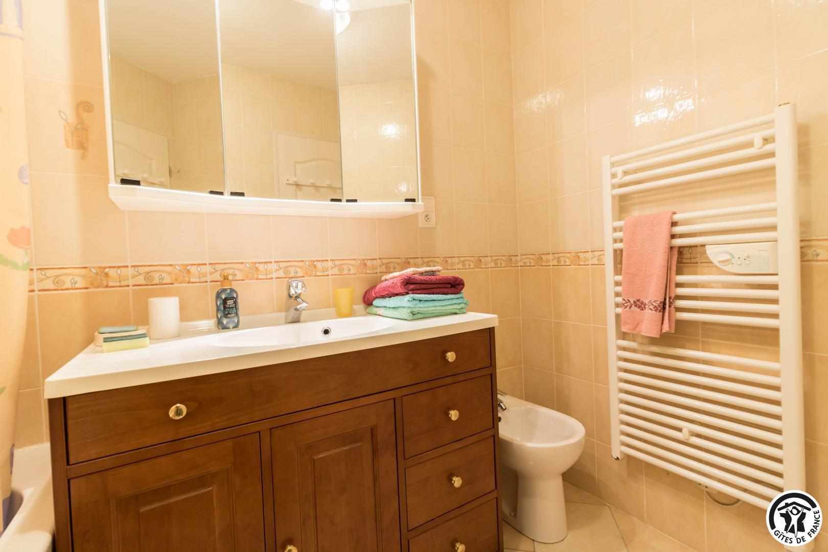 – au rez-de-chaussée : entrée desservant 1 WC indépendant et 1 chambre (2 lits en 90cm + lit bébé) avec salle de bains.