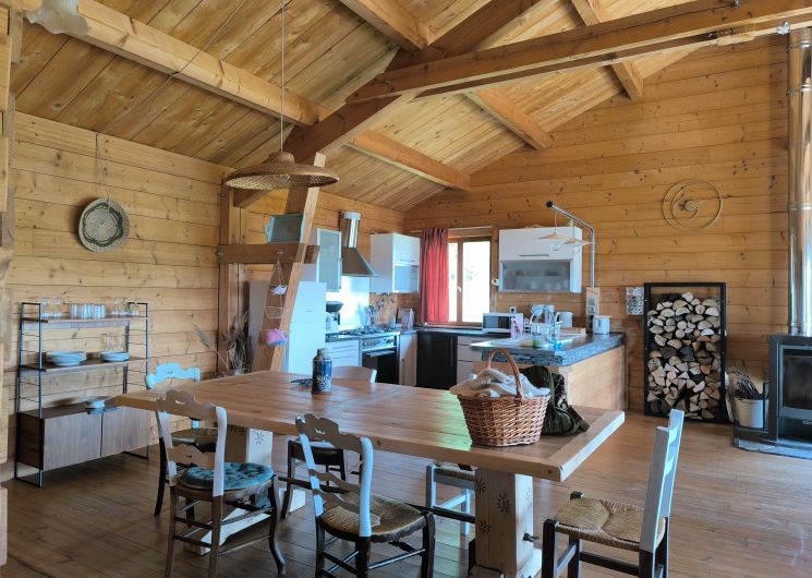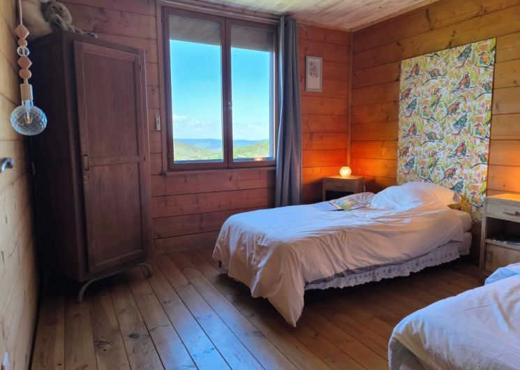 Chalet en bois pour 6 personnes avec vue unique sur le causse Méjean, pour une immersion en pleine nature. Gîte de 118 m² , adossé au village de Mas St Chély sur le causse Méjean, à 10 minutes des Gorges du Tarn et de Ste Enimie, avec une vue imprenable sur la nature. Idéal pour une totale déconnexion (au propre et au figuré !) : pas de wifi, car pas de ligne téléphonique fixe. Cependant, il y a la 4G. De grandes baies vitrées éclairent le salon-salle à manger-cuisine (des rideaux pour la déco, pas de volets.) Un salon-cuisine ouverte-salle à manger, un petit coin bureau, trois chambres (deux avec chacune un lit double en 140 et une avec deux lits simples en 90), une grande salle d’eau et un WC indépendant. Grande terrasse devant l’entrée et le salon (orientée est et sud). Terrain de 1000 m² (non clos et laissé sauvage, vue sur les chevaux qui paissent parfois dans les champs devant et les brebis qui pâturent un peu plus loin .