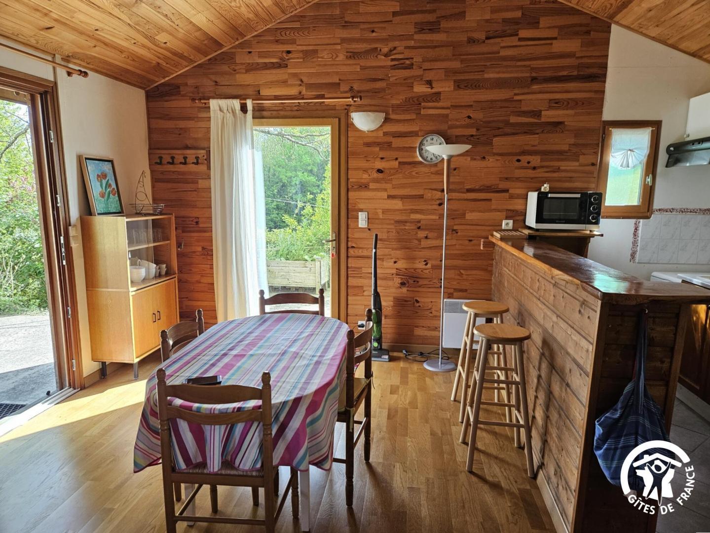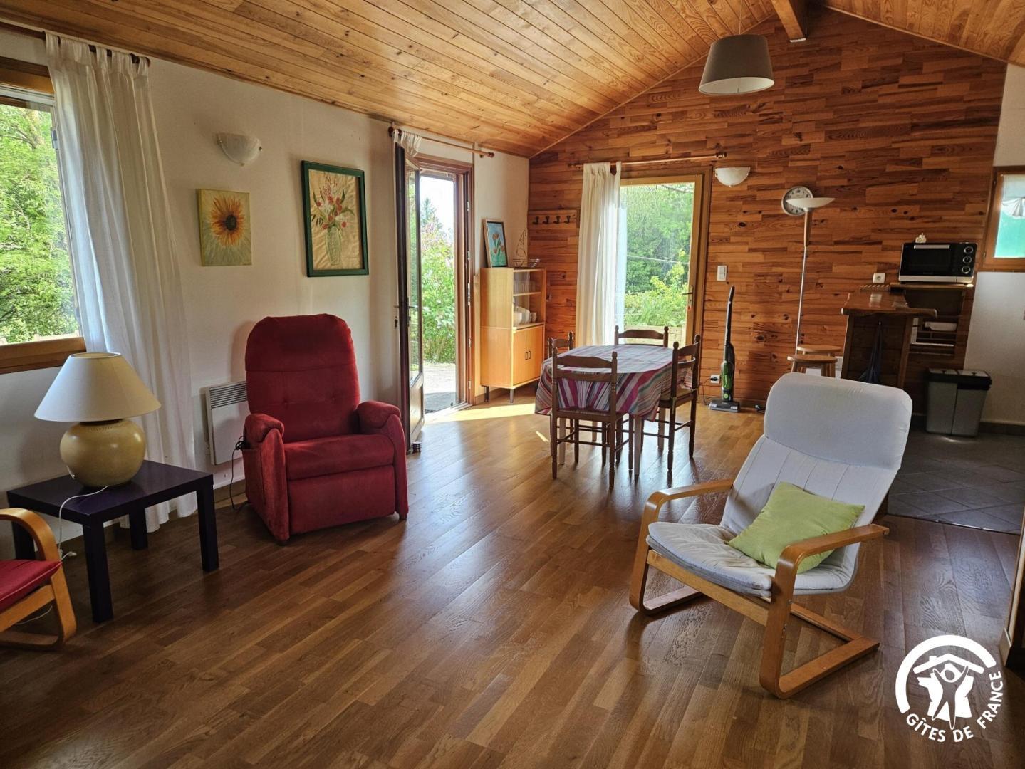 Dans le hameau du Tel dominant la vallée du Viaur, le gîte est un chalet indépendant tout en bois avec un très grand jardin