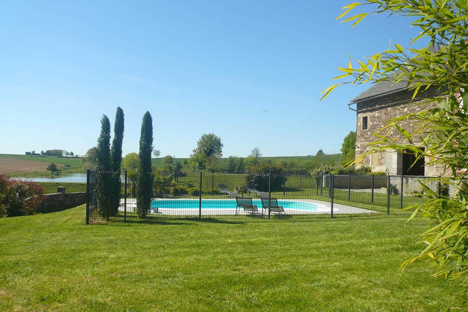 Une belle piscine privative et chauffée (de fin avril à début octobre) avec vue sur le lac privé où vous pourrez vous adonner à des parties de pêches là aussi en toute exclusivité (du 1er avril au 15 juillet).