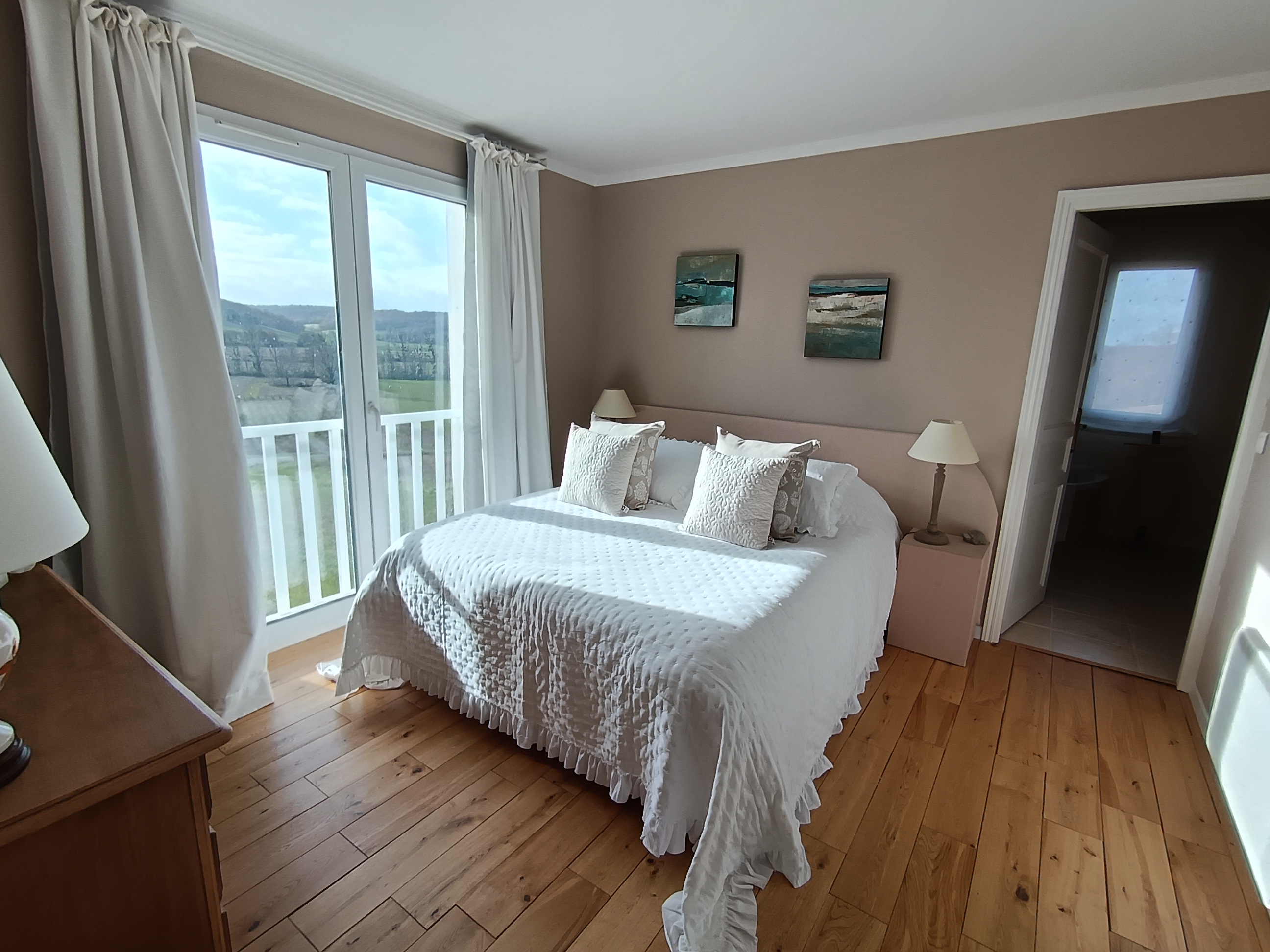 Le Charme des Bastides vous offre une opportunité unique de vous immerger au cœur de la route des bastides. Ce lieu privilégié est situé à mi-chemin entre les charmants villages de Castelnau de Montmiral et Puycelsi, offrant un point de départ idéal pour explorer la beauté et l’histoire de la région. Une décoration qui synthétise le charme du mobilier traditionnel avec les tendances du XXIe siècle. Avec une collection de peintures modernes d’un artiste lié à la famille. Le Charme des Bastides sera le camp de base de vos aventures, vos explorations des villages médiévaux dans un cadre naturel et paysager incomparable. De plus, à moins de 100 kilomètres, vous trouverez des dizaines d’escapades d’une journée pour tous les profils. Chambres confortables et pleines de charme Nous disposons de 5 chambres, chacune décorée avec sa propre personnalité tout en conservant une esthétique commune. Chacune de nos chambres est unique. L’élément le plus important d’une chambre d’hôtes est sans aucun doute la valeur ajoutée offerte par les propriétaires. Nous croyons que notre mission principale est de faire de votre séjour bien plus qu’un simple lieu pour dormir. Nous avons exploré la région pendant des années pour en connaître tous les recoins, et nous nous efforçons de rester à jour afin de pouvoir vous prodiguer des conseils utiles.Nous avons des guides pour des excursions d’une journée pour visiter la région (un guide gratuit par nuit réservée) Une chambre d’hôtes qui vous fera sentir comme dans l’un des meilleurs hôtels de France. Vue panoramique sur la Vallée de la Vère. Un demi-hectare de jardin. Juste à côté de la Forêt de la Grésigne et de la Base de Loisirs de La Vère-Grésigne. Au cœur de la route des Bastides. En dehors de la zone urbaine, avec le ciel le plus étoilé des nuits d’été. Personnel aimable et professionnel, disponible 24h/24 pour une expérience exceptionnelle. On parle français, anglais, espagnol et catalan. Pour savoir plus visiter notre site Web