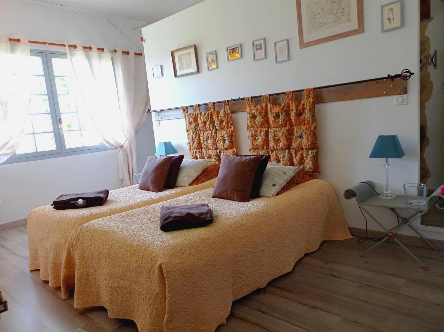 Dans une dépendance accessible par une cour intérieure, 2 chambres en rez-de-chaussée : 1 lits 160 (ou 2 lits de 80 séparés) salle d’eau / wc – chambre 2 avec 1 lit 180 (ou 2×90 par 200) salle d’eau / wc semi-ouverte. A disposition: salon, salle à manger. Entouré d’un parc arboré et fleuri. Équipement bébé à disposition: lit + chaise + chauffe-biberon + rehausseur + babyphone.