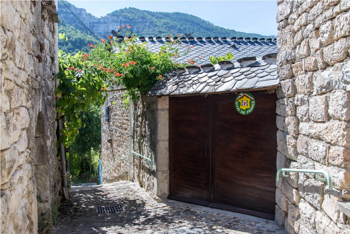 Gîte de style rural, tout en rez-de-chaussée, entrée coté cour avec cour fermée ombragée (vigne) + table et fauteuils de jardin et transat bain de soleil, en bas du village, au coeur des Gorges du Tarn. Très calme, Indépendant, jardin ombragé, rivière (Tarn) à 30 mètres. Tout en rez de chaussée. Côté cour, séjour avec 1 canapé et 1 fauteuil (4 places), coin cuisine intégré, 1 chambre (1 lit 2 places), 1 chambre (1 lit 2 places, 1 lit 1 place en supplément), salle d’eau, WC. Lave-linge, terrain, parc clos barbecue, parking privé. Chaise haute bébé. Location draps à la demande.