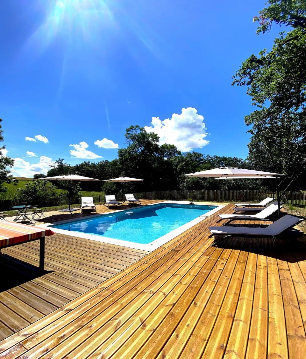 La piscine est non chauffée, mais les températures gersoises permettent une baignade très agréable. Possédant un autre gîte, elle sera entièrement réservée à tous les hôtes. Clôturée par une barrière en ganivelle avec portillon, elle est aussi sécurisée par une alarme. Le mobilier extérieur vous permettra de vous détendre au bord de l’eau, entourés des seuls bruits de la nature, et pourquoi pas y prendre l’apéritif ou vos repas. Boules de pétanque viendront agrémenter ces moments conviviaux.