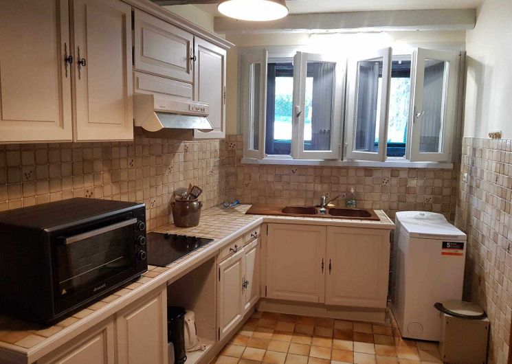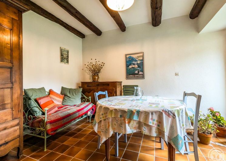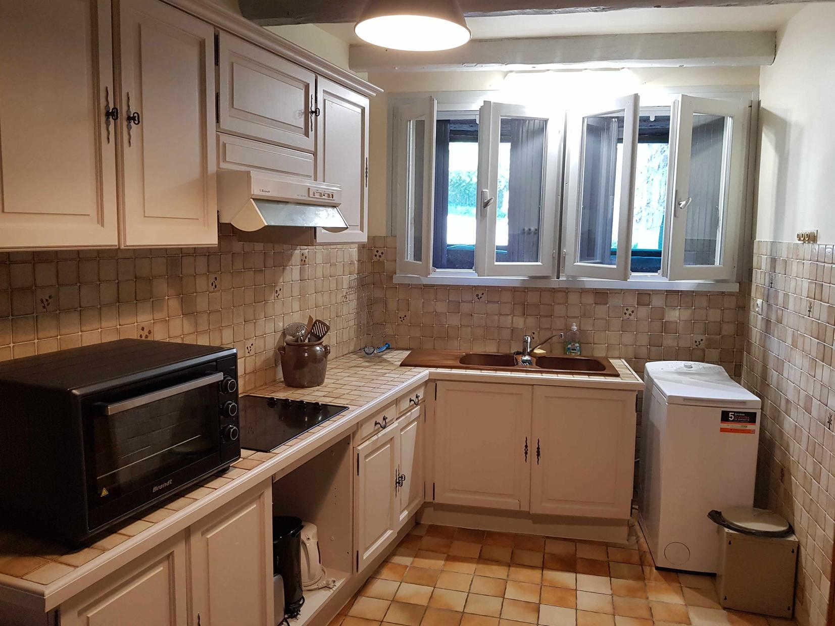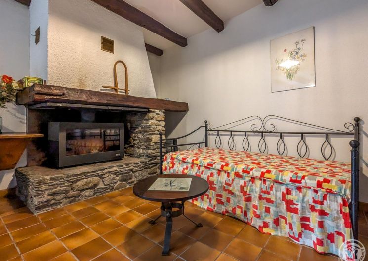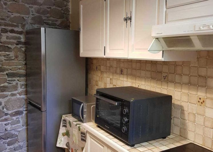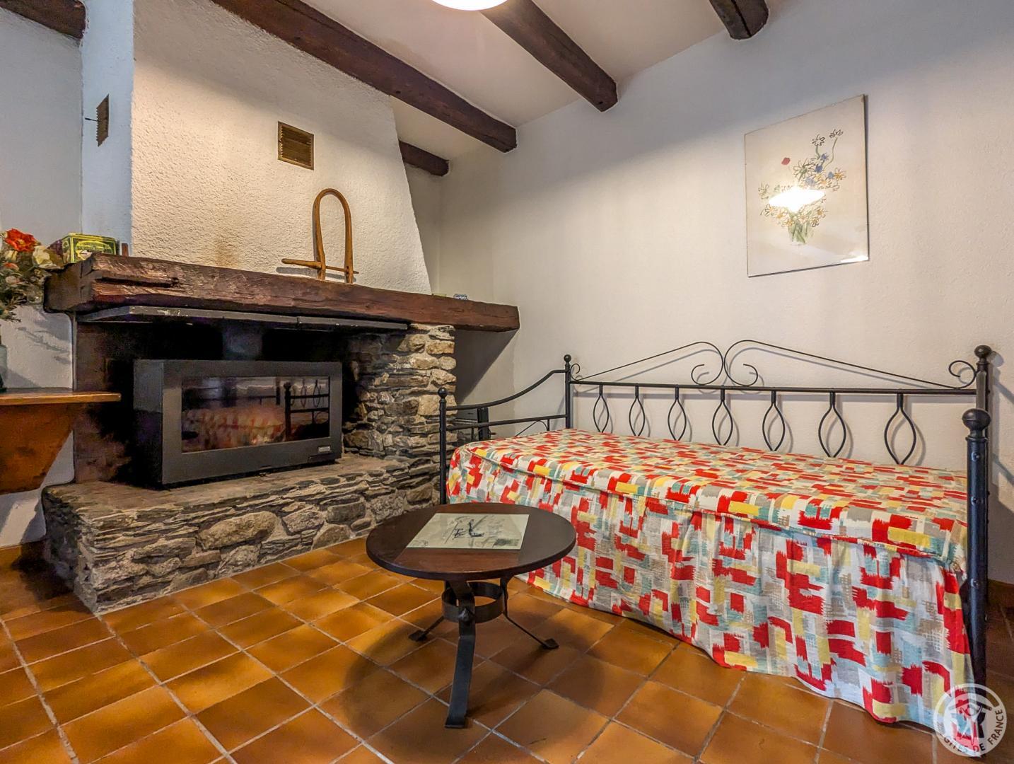 Gîte de plain-pied, mitoyen verticalement d’une location en été uniquement, et voisin du propriétaire : séjour avec espace repas et espace salon (lit banquette), cuisine séparée, chambre (1 lit double en 140*190cm), salle de bains, WC indépendant. Grand jardin ensoleillé presque toute la journée, avec une place pour la voiture en été. Stationnement public en bordure du jardin. Chauffage électrique et première flambée allumée à votre arrivée, par une cheminée insert. Internet par la WIFI du propriétaire. Attention, la fenêtre de la chambre donne sur le potager du propriétaire.