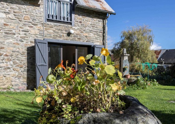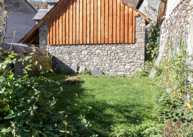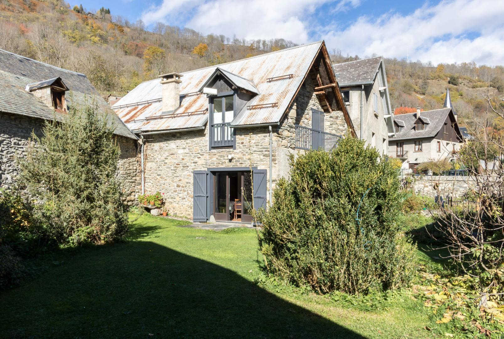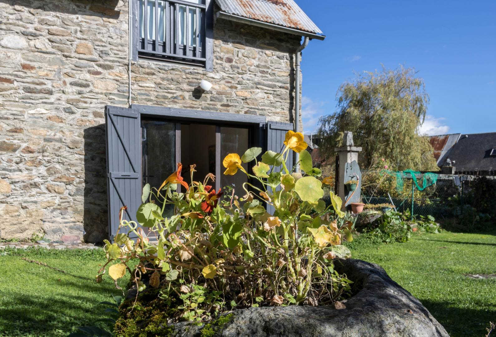 Très belle façade en pierres des Pyrénées, jardin ensoleillé