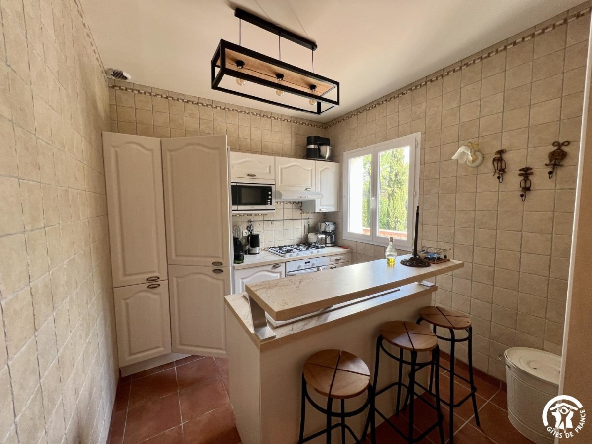 Villesèque des Corbières, charmant village de l’Aude, se niche entre vignes et garrigue, offrant un cadre paisible et authentique. Les amateurs de nature apprécieront les sentiers de randonnée menant vers les paysages sauvages des Corbières. À proximité, découvrez les châteaux du Pays Cathare, dont Aguilar, témoin de l’histoire médiévale. Le site naturel des Gorges de Galamus et la réserve africaine de Sigean séduiront petits et grands. Les vignobles alentour produisent des vins de caractère en AOC Corbières, à déguster dans les caves locales. La région regorge de marchés typiques et de produits du terroir. Enfin, la mer Méditerranée n’est qu’à 30 minutes, pour profiter des belles plages de sable fin. Le village se trouve au cœur du Parc Naturel Régional de la Narbonnaise, ou vous profiterez de nombreuses promenades pédestres et VTT. Vous profiterez de la piscine privative chauffée (29 degrés d’avril à octobre) 5×10 m qui se trouve devant le gîte. Terrasse privative avec salon de jardin et grande cuisine d’été (plancha, frigo, lave-vaisselle, Baby-foot, etc.…). Bains de soleil. Gîte comprenant : -un grand séjour cuisine toute équipée, donnant sur une grande terrasse avec salon de jardin. -WC indépendant. -3 chambres avec 2 lits en 160 et 2 lits en 90, dont une avec salle de bain privative. -Salle d’eau indépendante. -Mitoyen au gîte un appartement indépendant (loué ensemble) avec un coin cuisine toute équipée, salle d’eau avec WC et une chambre avec 1 lit en 160 donnant sur une terrasse. -Grand jardin entièrement clos de 1100 m² avec stationnement dans la propriété.