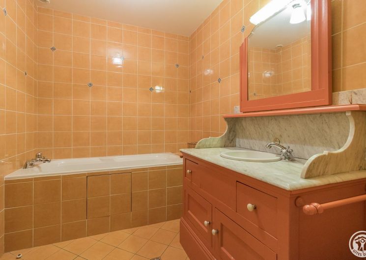 – Rez-de-chaussée : cuisine avec coin-repas, salon avec cheminée, 1 chambre (2 lits 1 personne en 90cm + salle d’eau/WC adaptée), WC/buanderie.