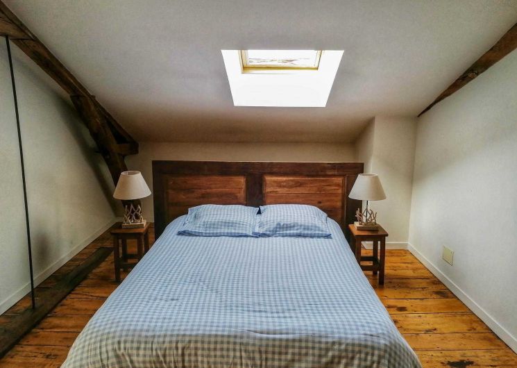 – Deuxième étage sous combles : 1 chambre (1 lit 2 personnes en 140cm) et un petit dortoir, idéal pour des ados (3 lits 1 personne en 90cm) avec chacune sa salle d’eau.