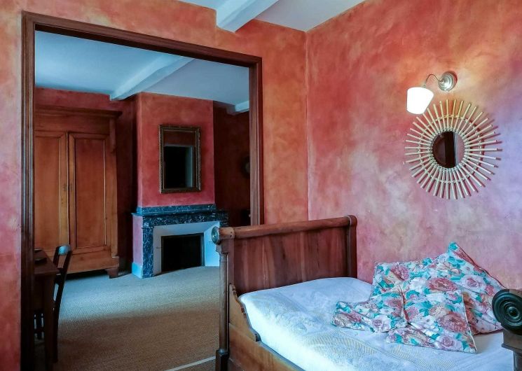 – Premier étage : chambre « Rouge » (1 lit 2 personnes en 160cm + lit enfant + salle de bains avec douche + WC séparé), chambre « Jaune » (1 lit 2 personnes en 160cm + 1 lit 1 personne en 90cm + salle d’eau/WC).