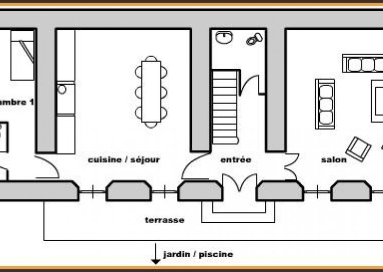 – Espace extérieur : jardin privatif clos, portique et terrasse. Piscine clôturée (5*10), commune avec les propriétaires et l’autre gîte.