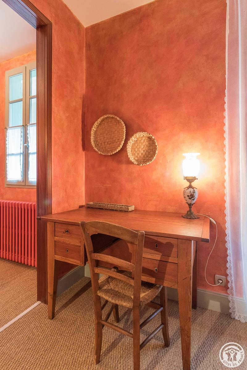 – Premier étage : chambre « Rouge » (1 lit 2 personnes en 160cm + lit enfant + salle de bains avec douche + WC séparé), chambre « Jaune » (1 lit 2 personnes en 160cm + 1 lit 1 personne en 90cm + salle d’eau/WC).