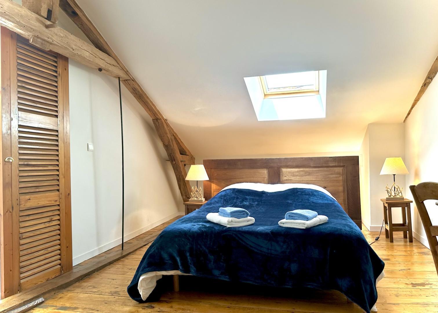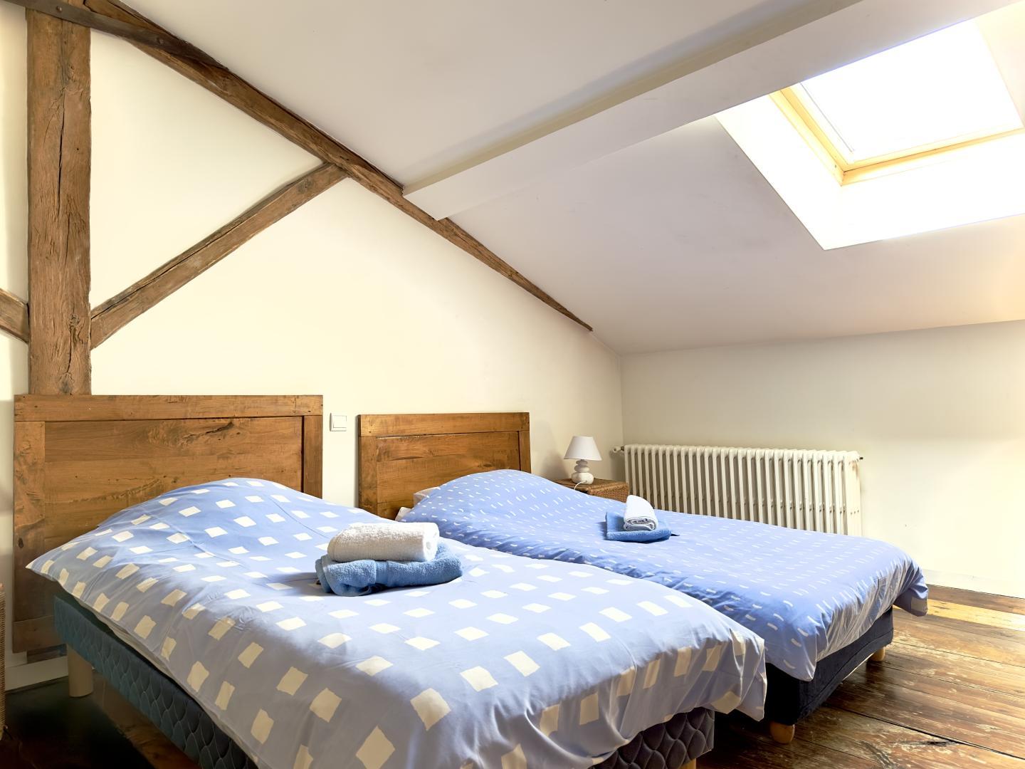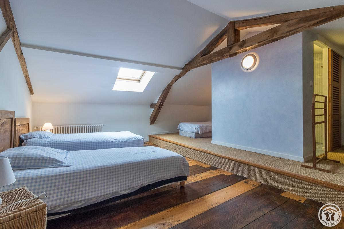 – Deuxième étage sous combles : 1 chambre (1 lit 2 personnes en 140cm) et un petit dortoir, idéal pour des ados (3 lits 1 personne en 90cm) avec chacune sa salle d’eau.