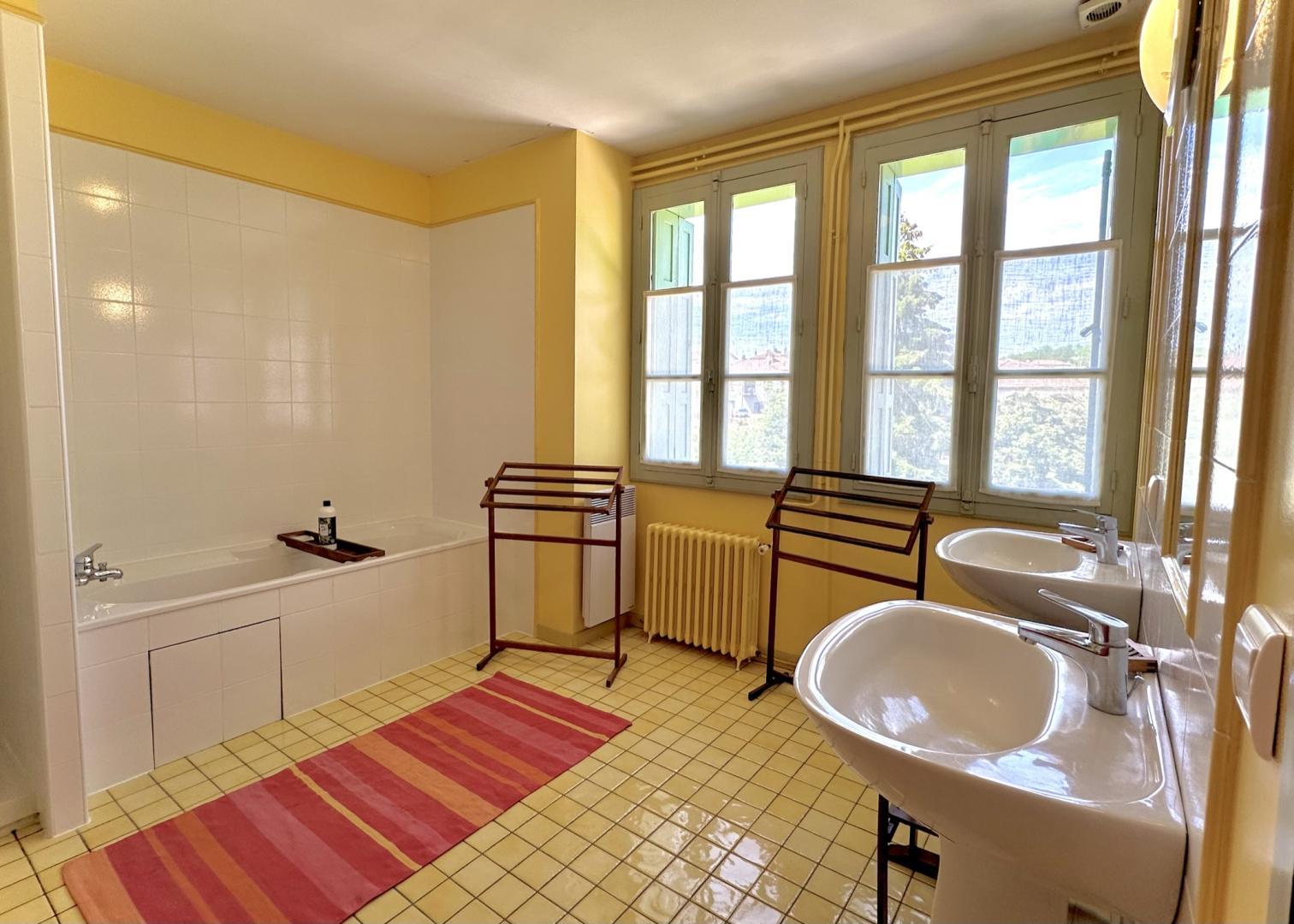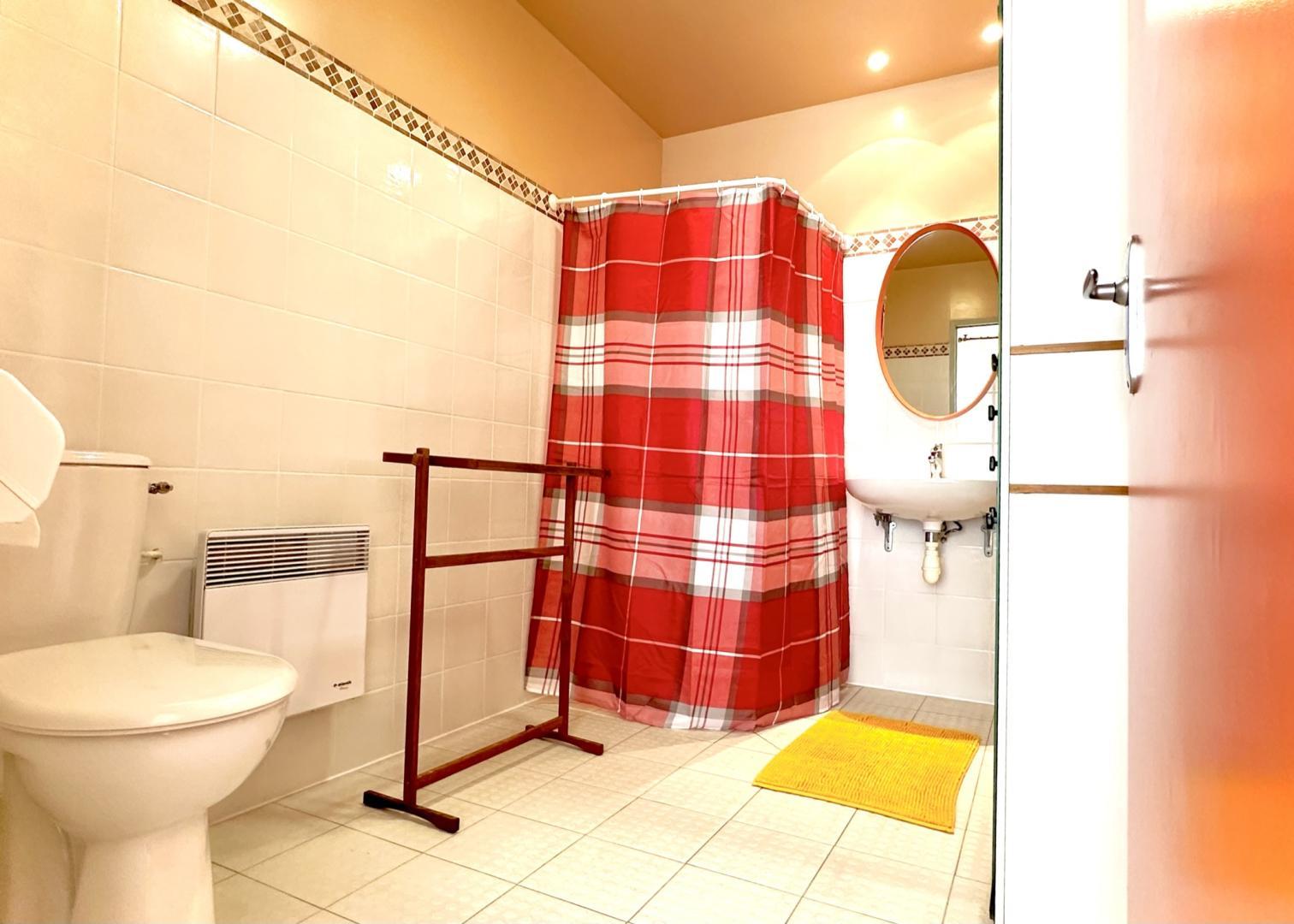 – Étage : chambre « Coloniale » (1 lit 2 personnes en 160cm + 1 lit enfant en 80cm), chambre « Nature » (1 lit 2 personnes en 160cm + 1 lit 1 personne en 90cm), salle de bains avec douche et baignoire, WC indépendant.