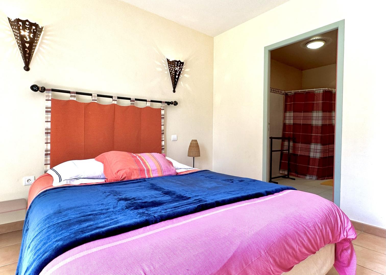 – Rez-de-chaussée : entrée, cuisine avec espace repas, salon avec cheminée, chambre « Africaine » (1 lit 2 personnes en 140cm) avec salle d’eau/WC privative, WC indépendant.