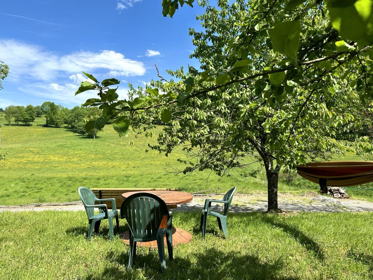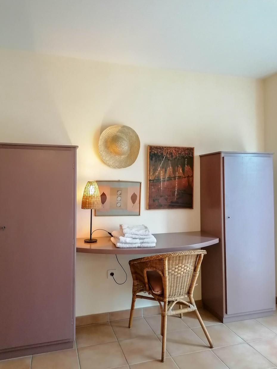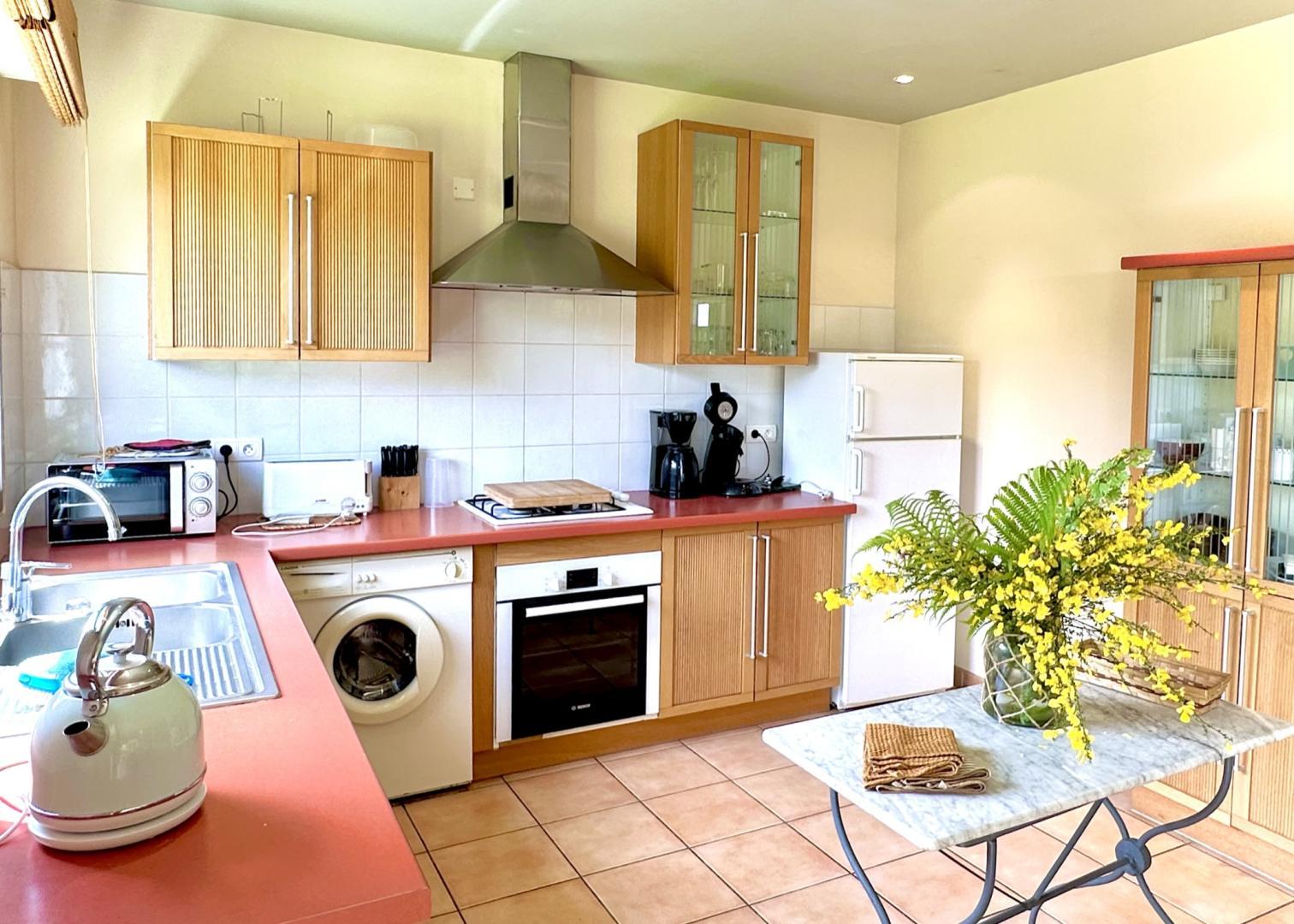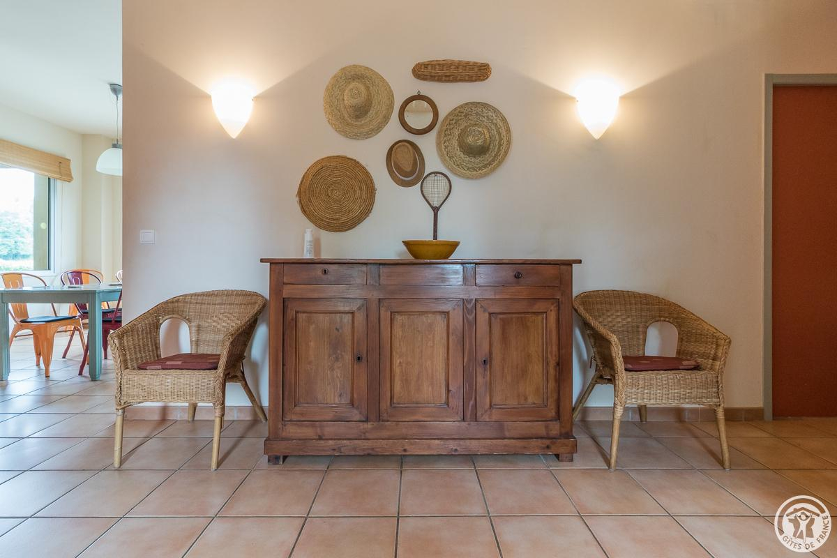 – Espace extérieur : jardin clos privatif, terrasse. Piscine commune (5*10) avec les propriétaires et les locataires du deuxième gîte (plage avec bains de soleil) ouverte de 10h à 20h. Aire de stationnement réservé.