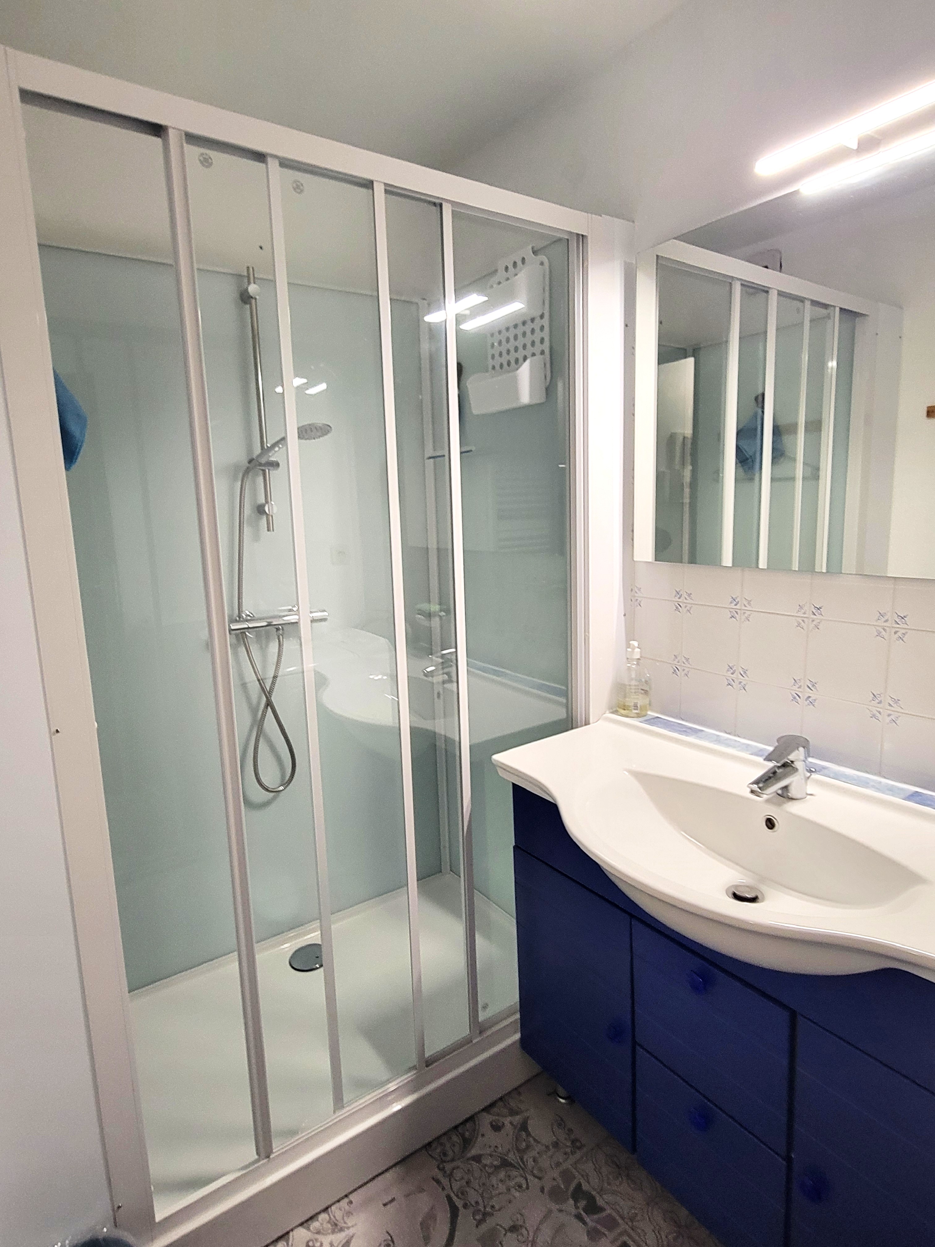 L’appartement se compose d’une chambre confortable avec lit double et rangement, d’un salon spacieux et lumineux, d’une cuisine entièrement équipée ainsi que d’une salle de douche fonctionnelle. Un parking privé et couvert est également à disposition, un véritable atout en centre ville.