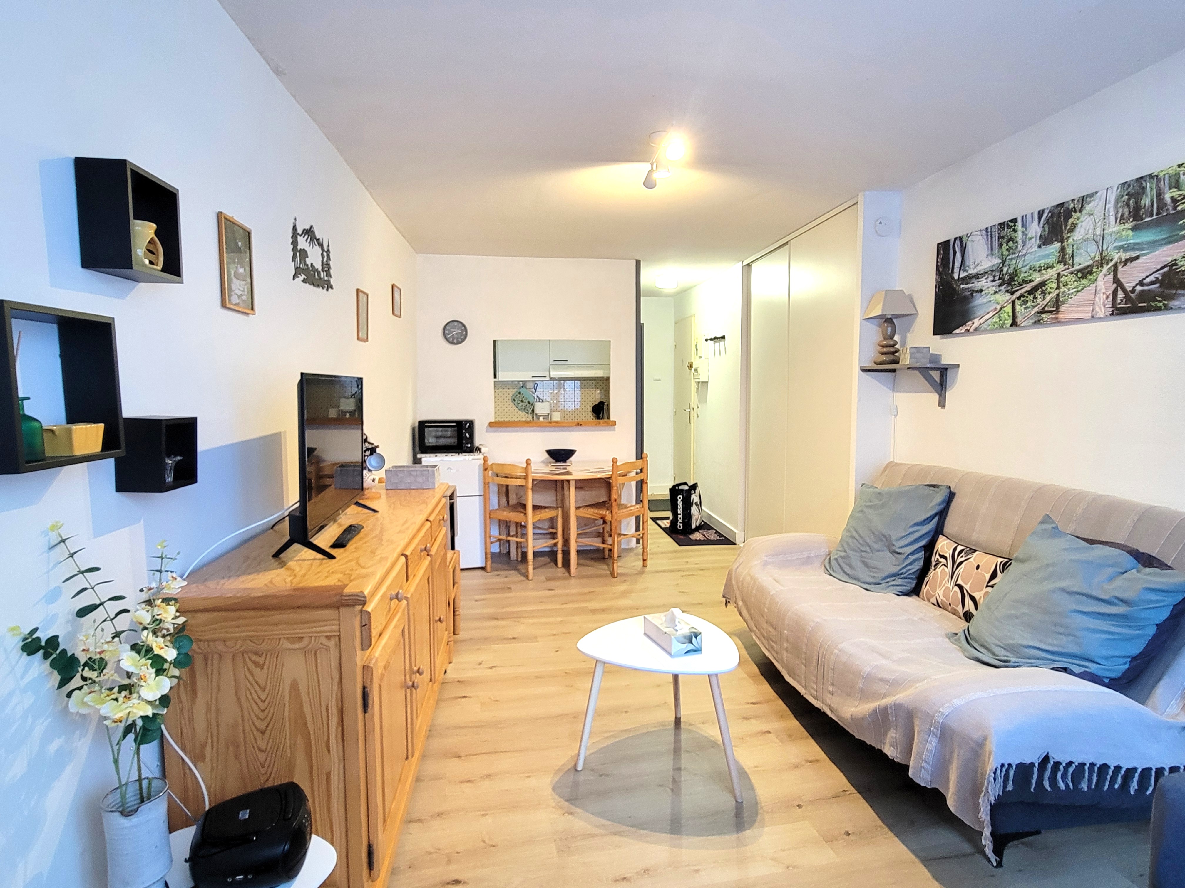Charmant appartement T2 idéalement situé au centre de Luchon, au sein de la résidence du Grand Hôtel. Il dispose d’une chambre confortable, d’un salon spacieux et lumineux, d’une cuisine entièrement équipée ainsi que d’une salle de douche. Parking privé à disposition. Un cadre pratique et agréable pour un séjour au cœur de la ville.