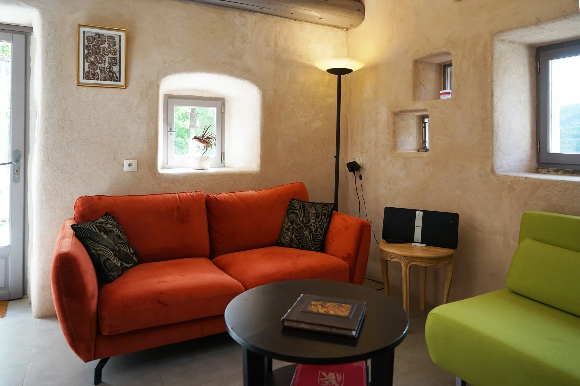 1 Séjour télévision, DVD, bibliothèque, Wifi gratuit, Climatiseur. Cuisine américaine avec équipement moderne complet, lave-vaisselle.