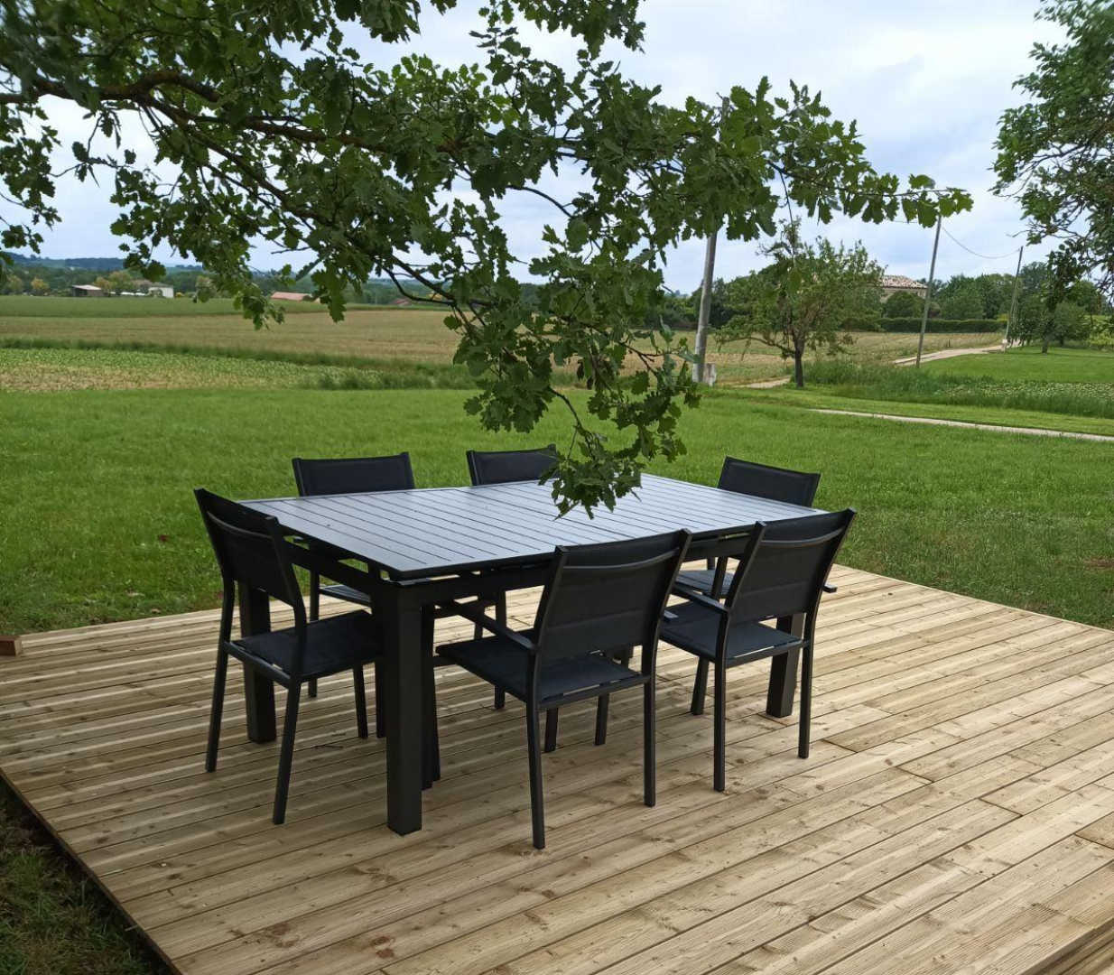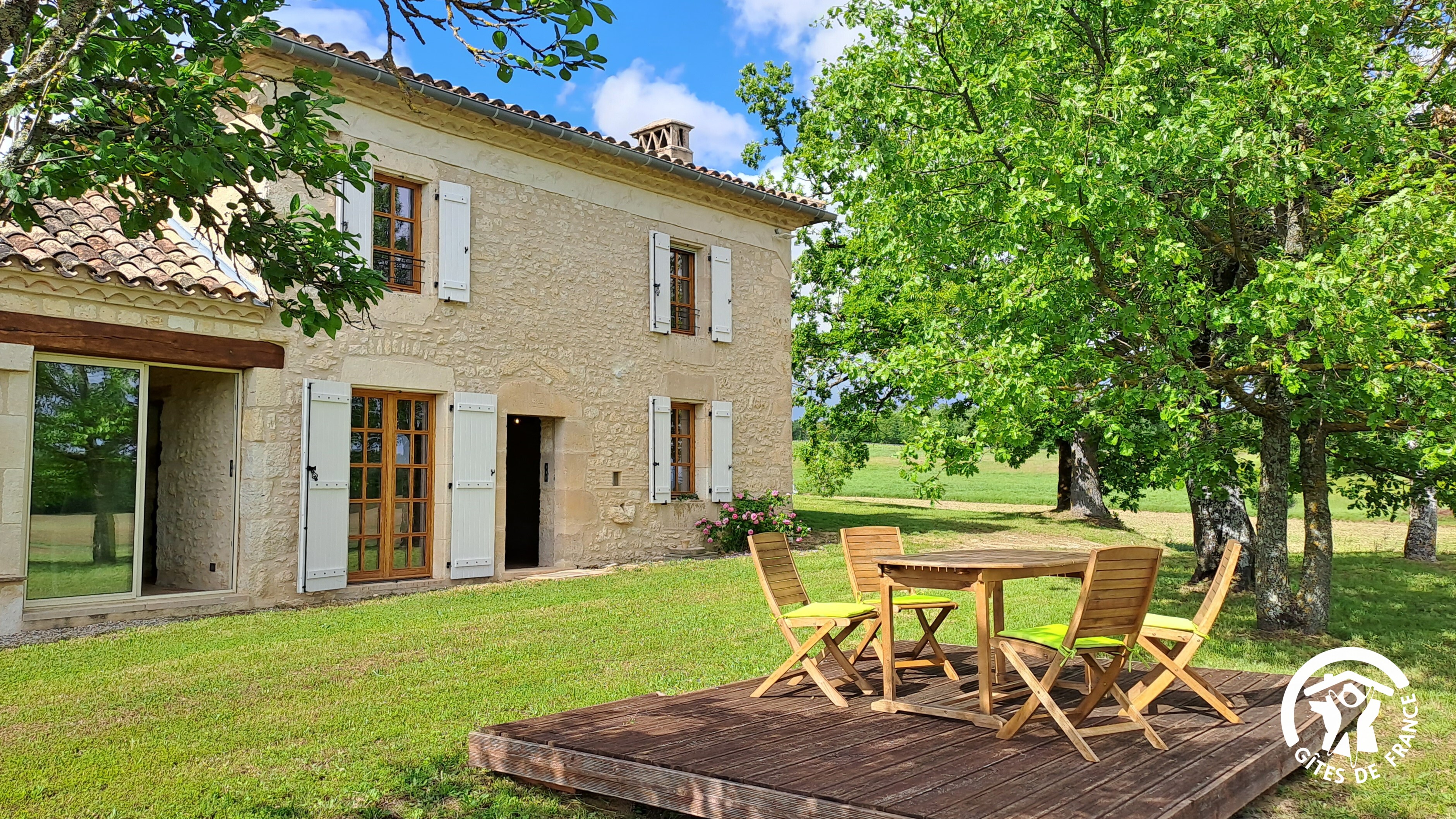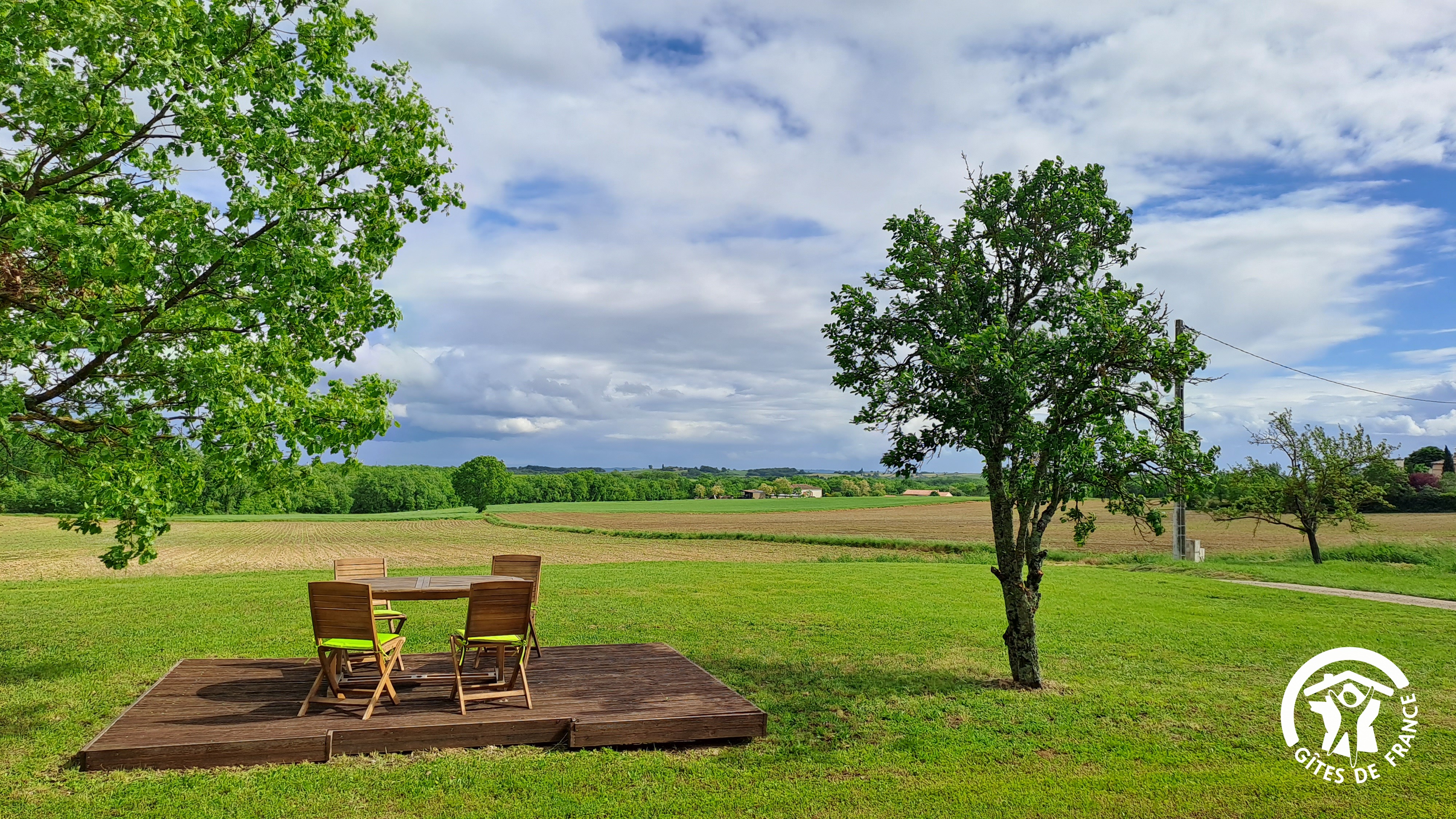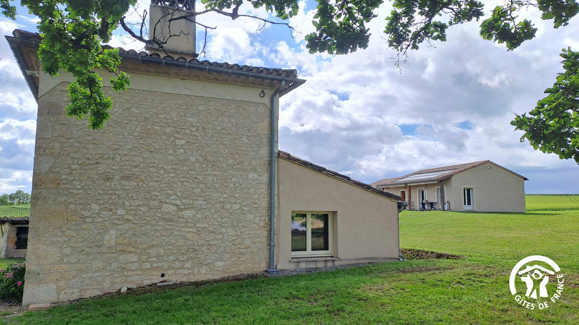 Grand jardin non clos tout autour de la maison avec un petit bois à l’arrière du gîte où vous pouvez profiter de l’ombre des arbres et des vignes à quelques mètres. Vous pouvez vous garer devant la maison.