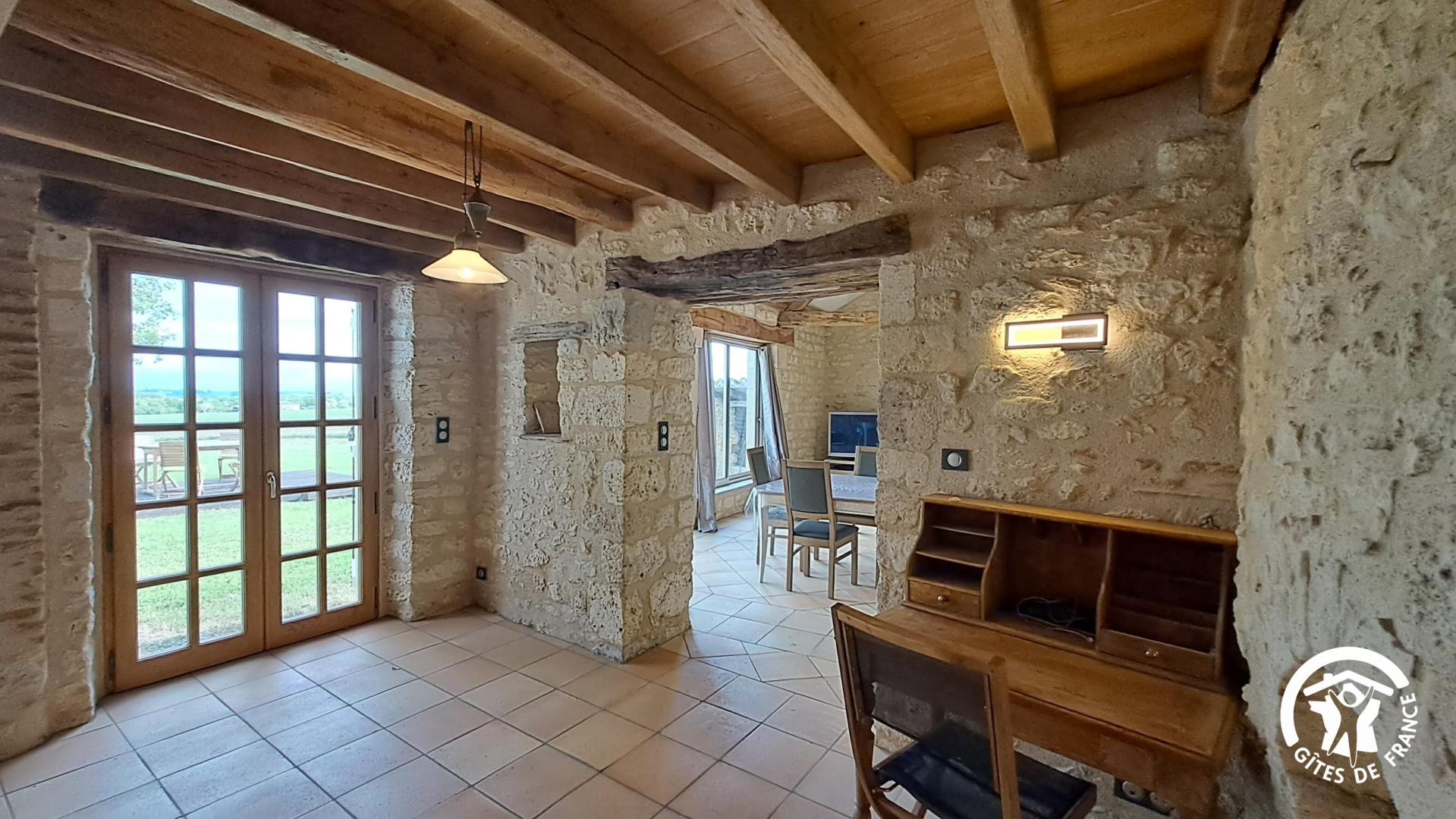 Charmante maison indépendante, toute en pierre et poutres apparentes, pouvant accueillir jusqu’à 4 personnes. Le propriétaire habite à quelques mètres à l’arrière du gîte; mais vous disposez d’une terrasse à l’avant de la maison vous permettant d’être indépendant et de profiter de la vue sur la campagne tarnaise.