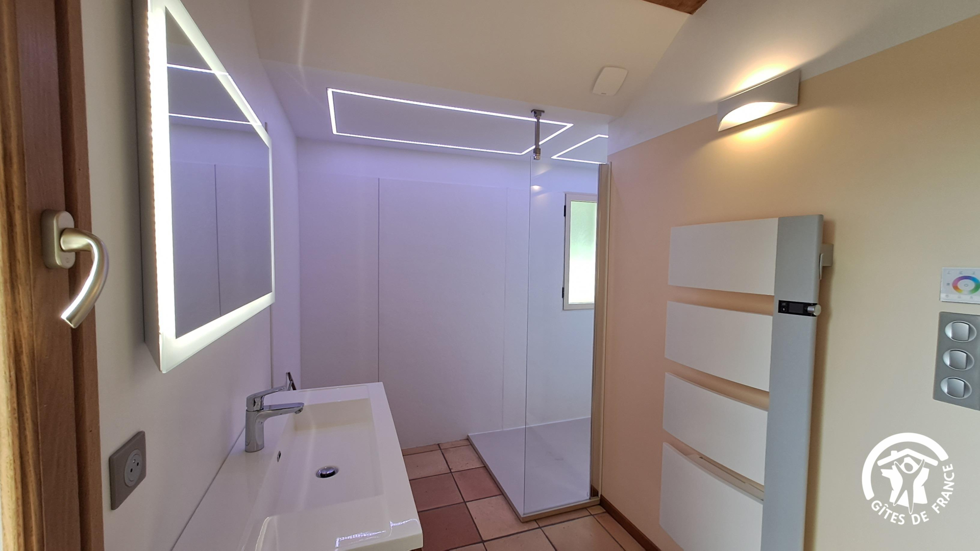 – Salle d’eau avec douche à l’italienne et vasque. Wc indépendant dans le couloir, buanderie avec machine à laver le linge