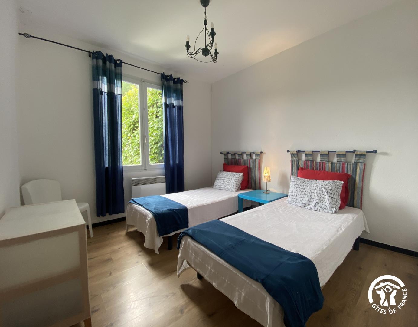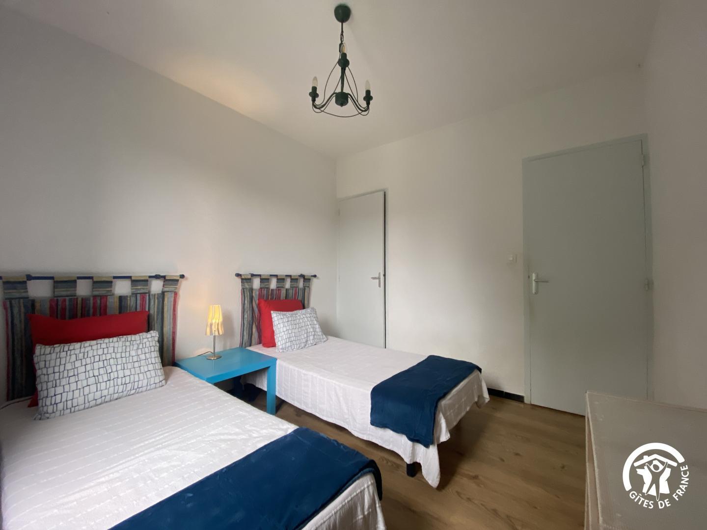 Rez de chaussée Cuisine Séjour Une chambre avec 1 lit 140 x 190 Une chambre avec 2 lits 90 x 190 Salle d’eau Wc. Petit jardin non clos privatif équipé d’un salon de jardin, et d’un barbecue donnant sur terrain Parking sur place.